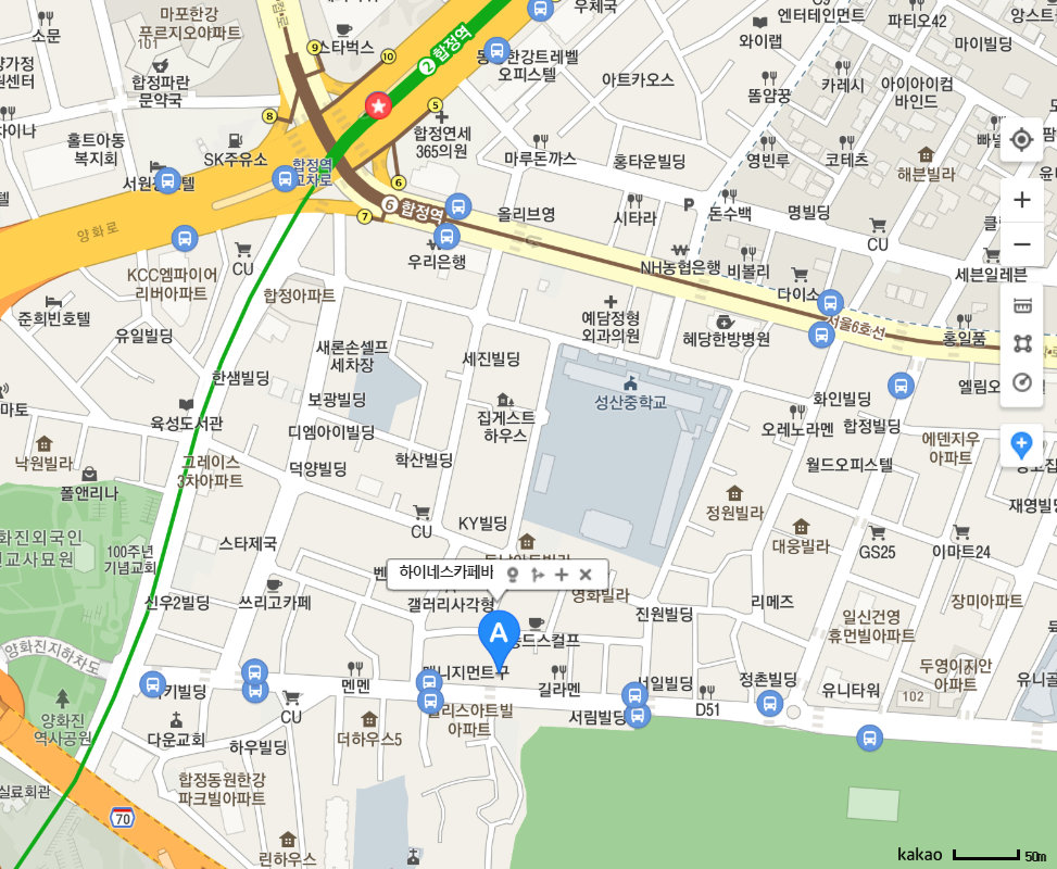 *합정역 7번출구에서 스타제국 방면으로 쭉 걷다 좌회전하면 길가에서 바로 보입니다.