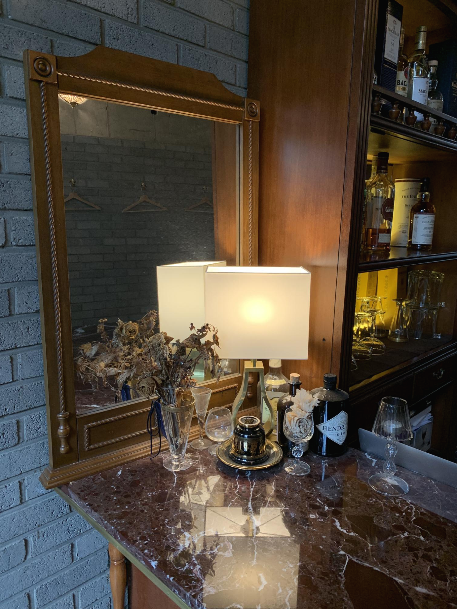 밀크티와 칵테일 두 잔을 호로록 마시며 바라 본 풍경. 정말 정갈하고 예쁘지 않은가? 심지어 이 부분이 이 가게에서 가장 '덜' 예쁜 부분이다. 싱크대와 각종 안주들이 여기에 비치되어 있기 때문. 그럼에도 이 안쪽이 제일 아늑해 보이는 것은 사실이다. ^^;;
