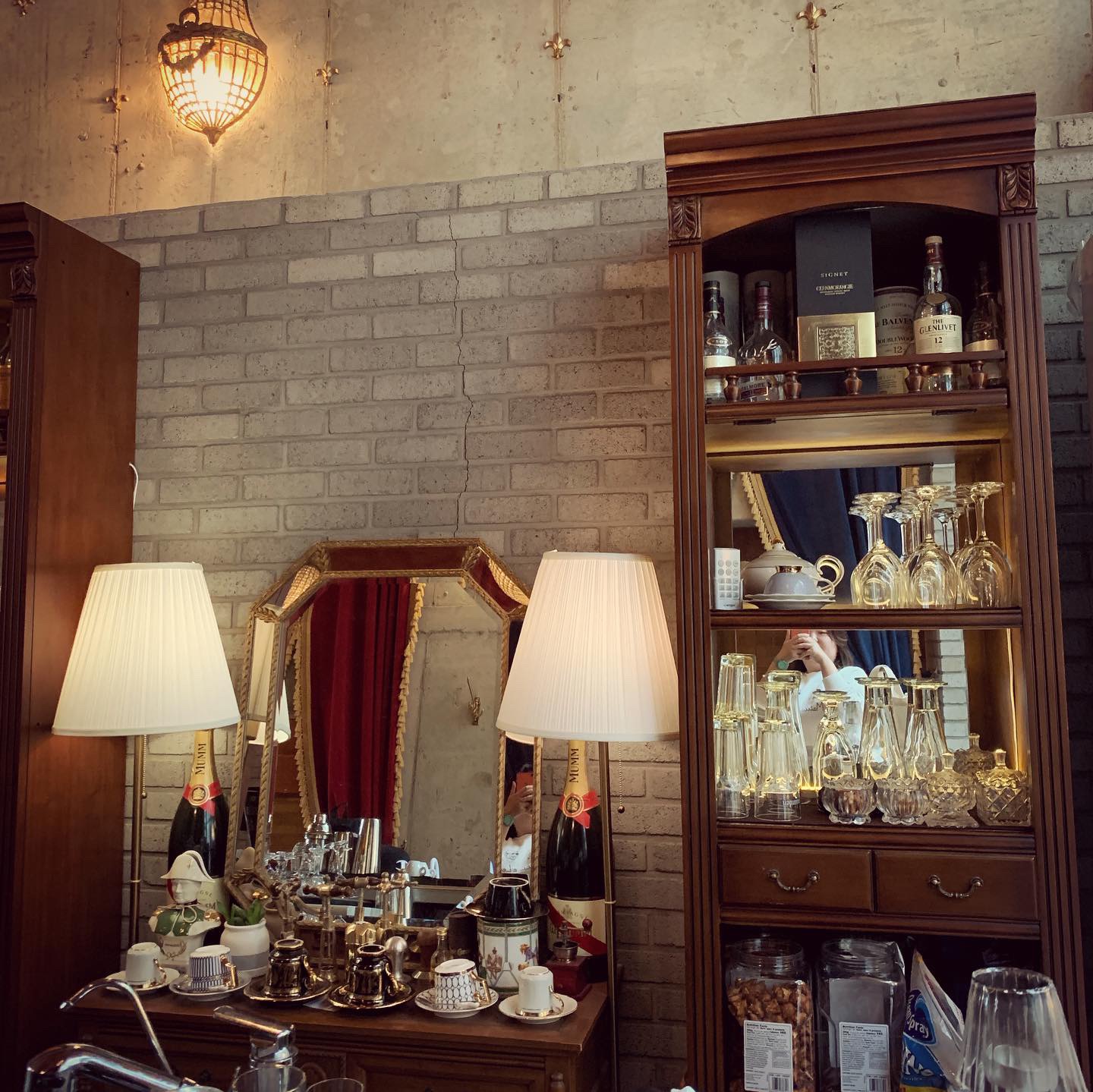 언젠가 마련할 신혼집의 서재 벽면이 이랬으면, 싶을 정도로 마음에 쏙 든, 합정 분위기 좋은 카페 하이네스. 앤틱 소품이라 하더라도 일부 대중화된 제품들의 경우 이집 저집 겹치는 것들이 많은데, 하이네스의 소품들은 다른 곳에서 본 적 없는 조명과 장식장, 바 테이블이었다.