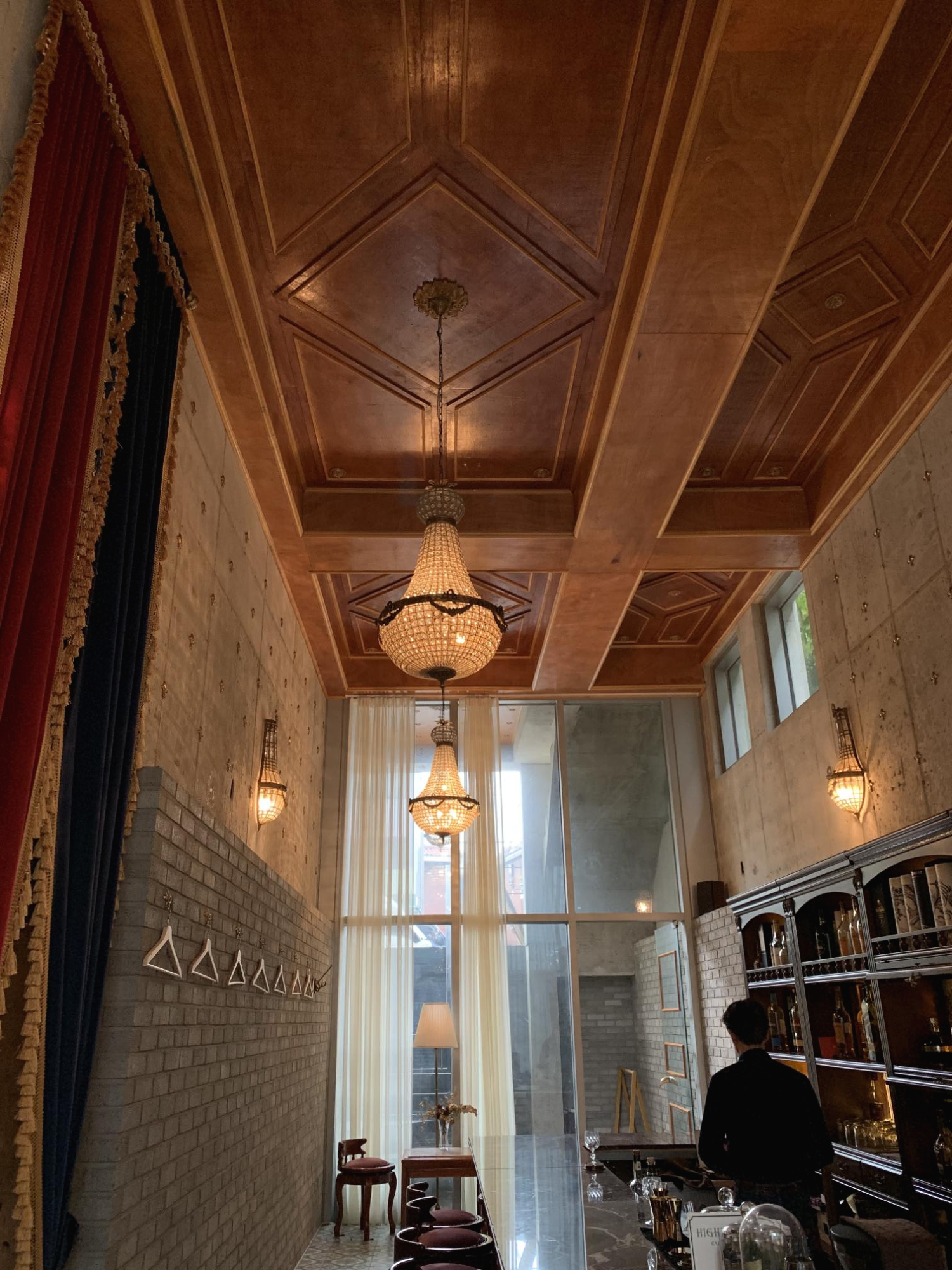 합정데이트코스를 개척하러 대낮부터 서둘러 나선 우리. 첫 손님이었다. 카페 간판과 같이 차분하지만 내공이 느껴지는 젊은 청년 사장님께서 (우리 커플보다는 인생 선배님이실 것 같은!) 오픈을 준비하고 계셨다. 높은 천장고와 공간에서 느껴지는 앤틱 + 모던함에 넋을 잃고 바라보았다. 특히 목재로 마감된 천장과 포인트로 사용한 금속 이탈리아 문양들이 너무나 조화롭게 배치되어 있어서 놀랐다.