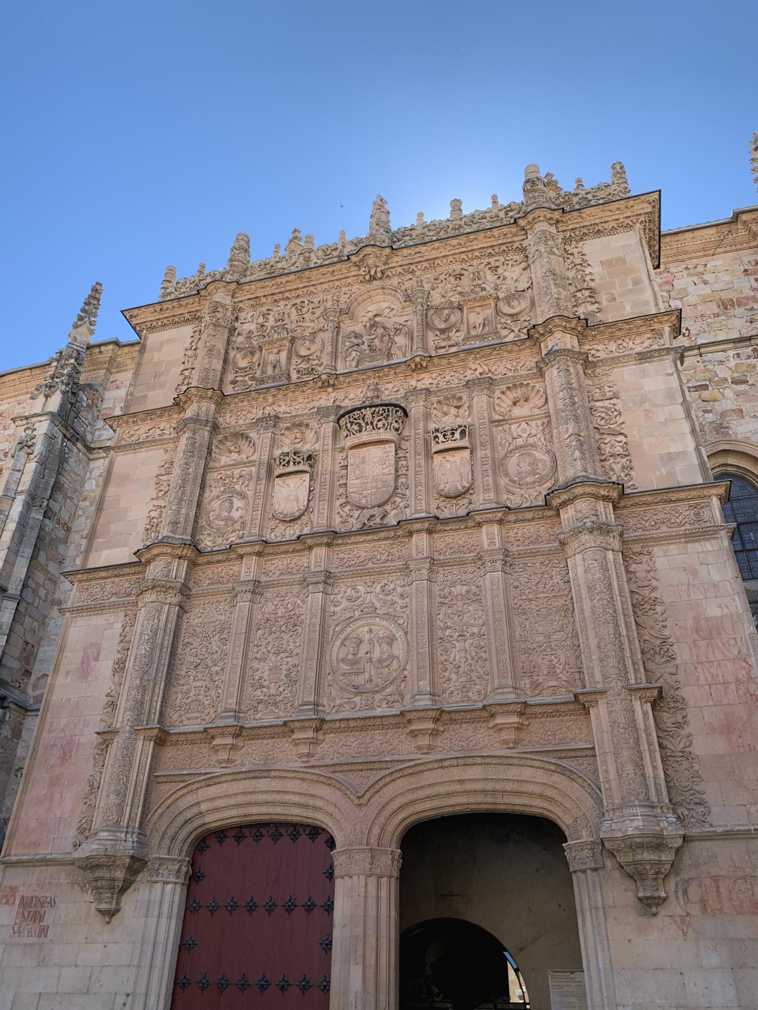 바로 이어지는 살라망카 대학의 입구. 무려 1218년에 개교한 공립 종합대학이다. 유럽에서 세 번째로 오래된 대학이라고 한다. 스페인의 최상위권 대학이자, 유럽의 명문 대학으로도 손꼽힌다. 유학생들을 위한 스페인어 코스도 잘 짜여 있어 세계 각지에서 유학을 오기도 한다고.