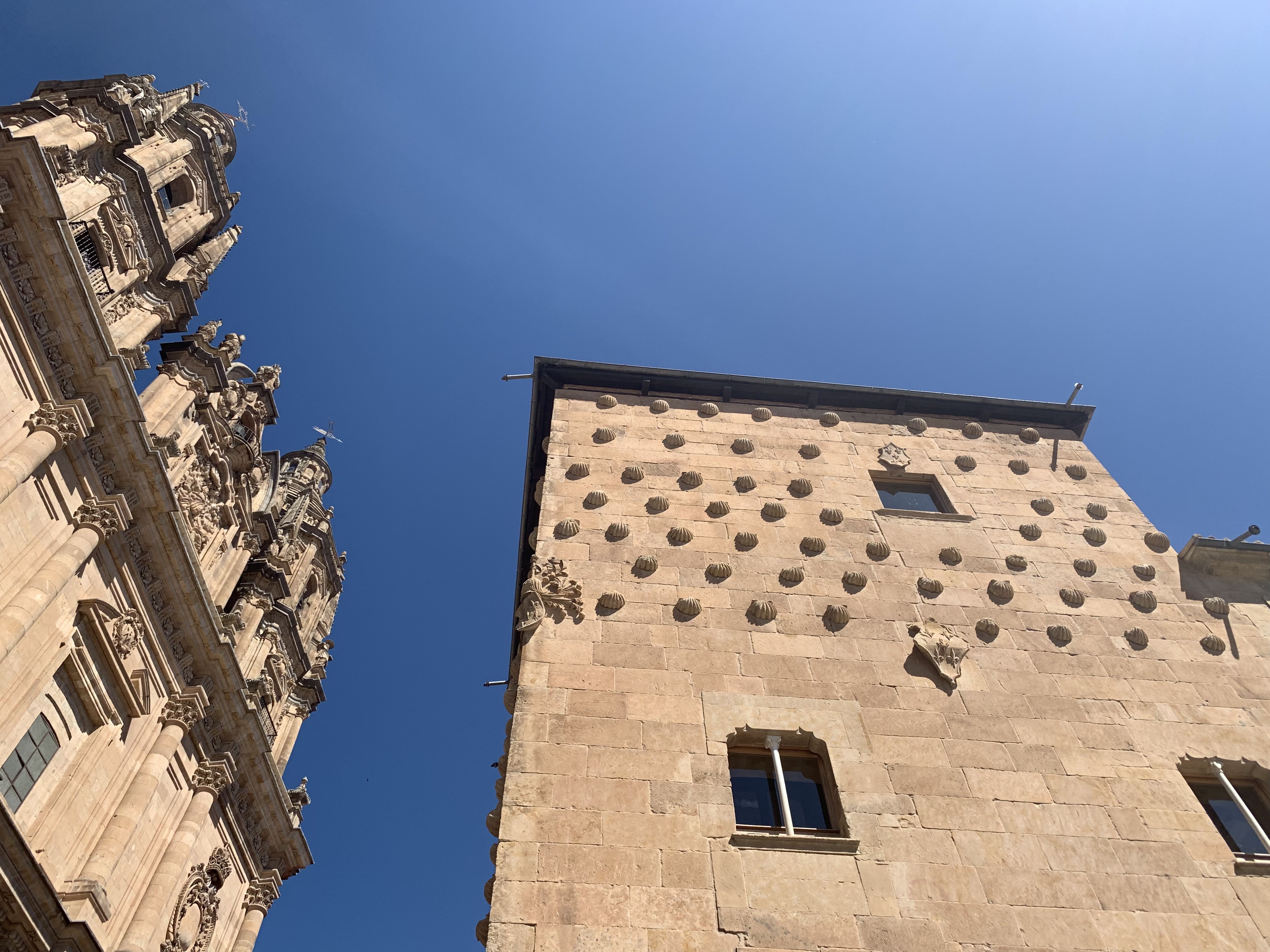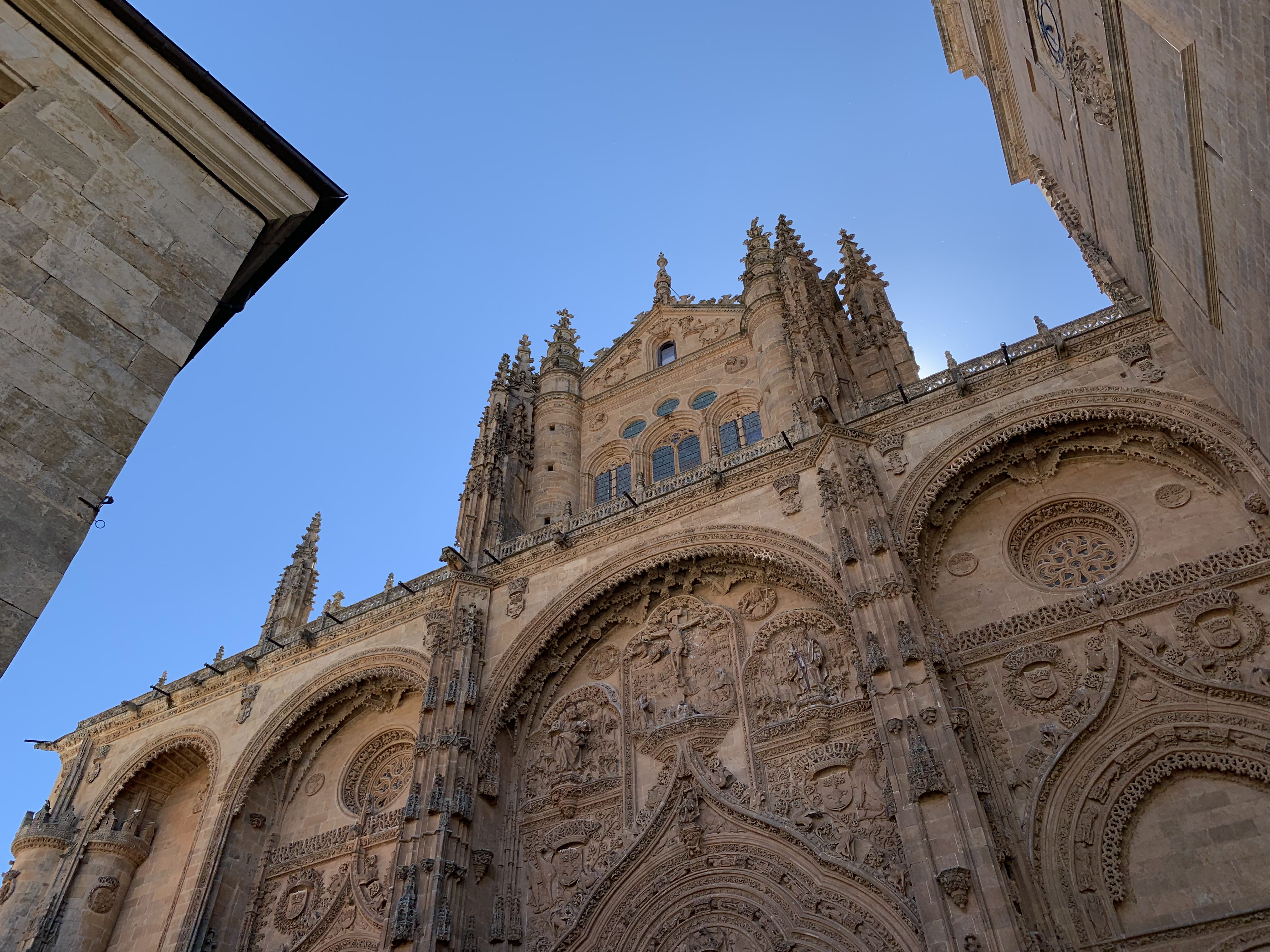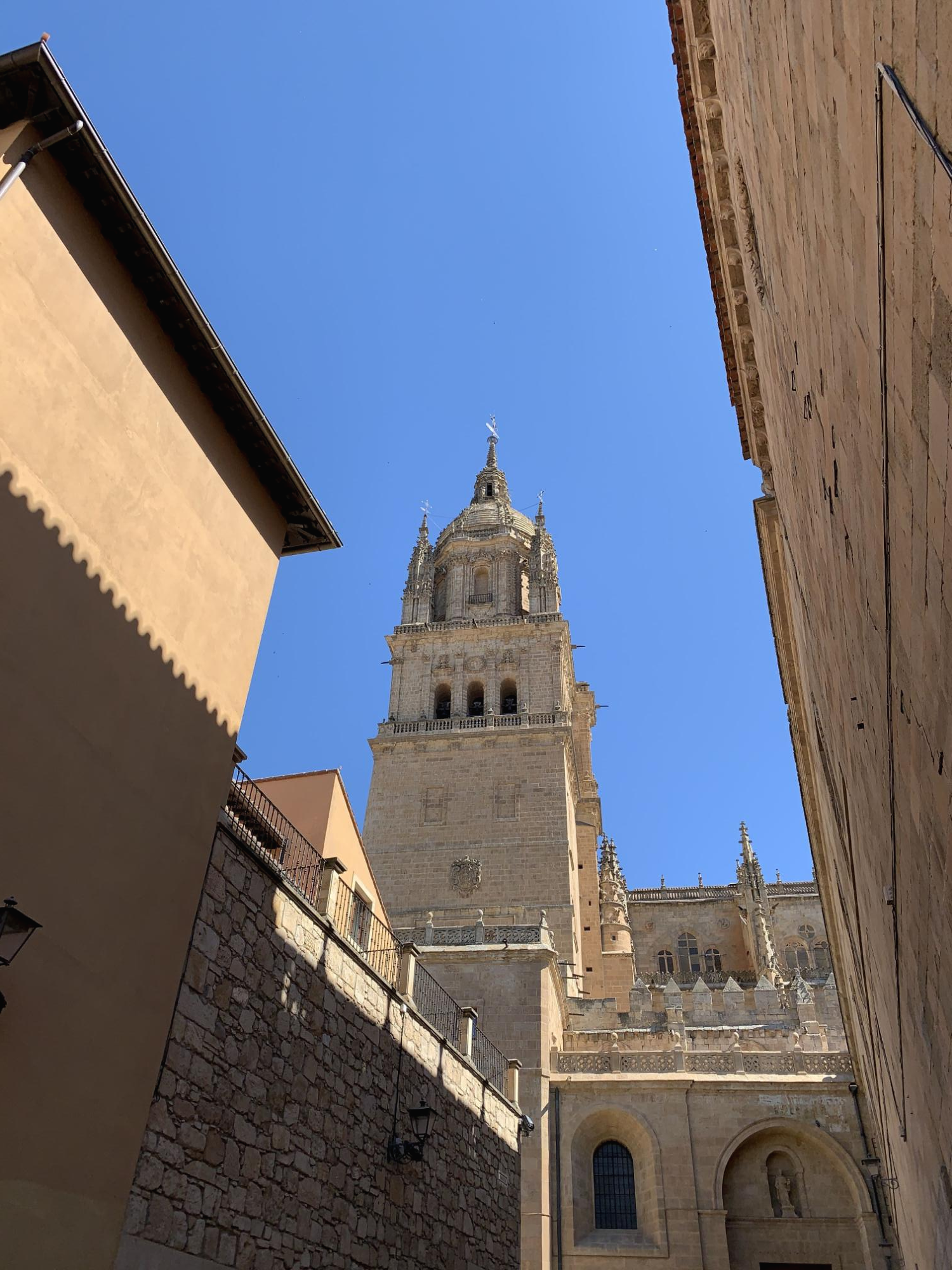 찬란한 후광과 함께 드디어 모습을 드러낸 살라망카 대성당의 측면! 골목 끝으로 가도 카메라 앵글에 다 들어오지 않는다. 실물로 보았을 때의 위압감이 아직도 뇌리에 선연하다.