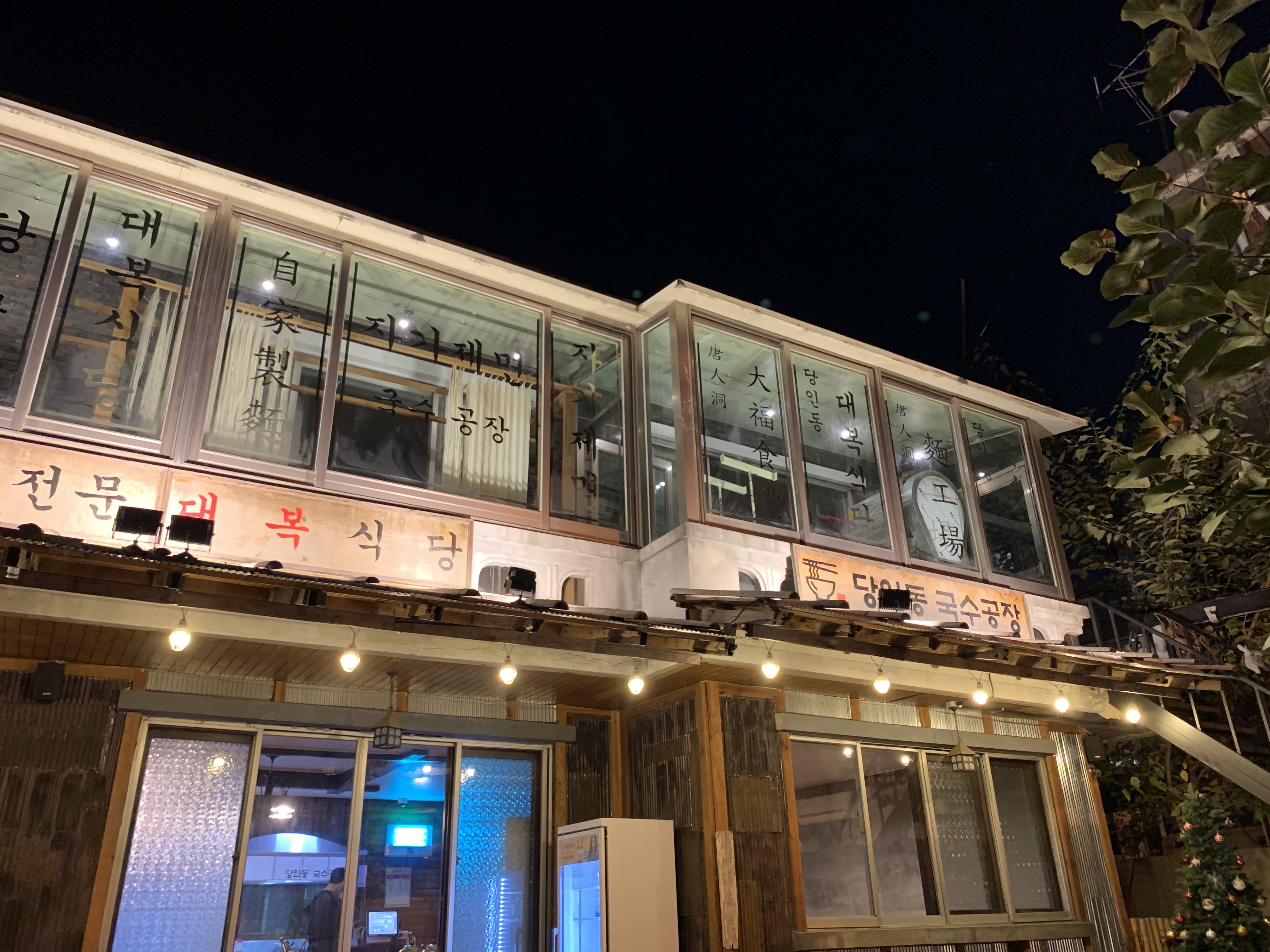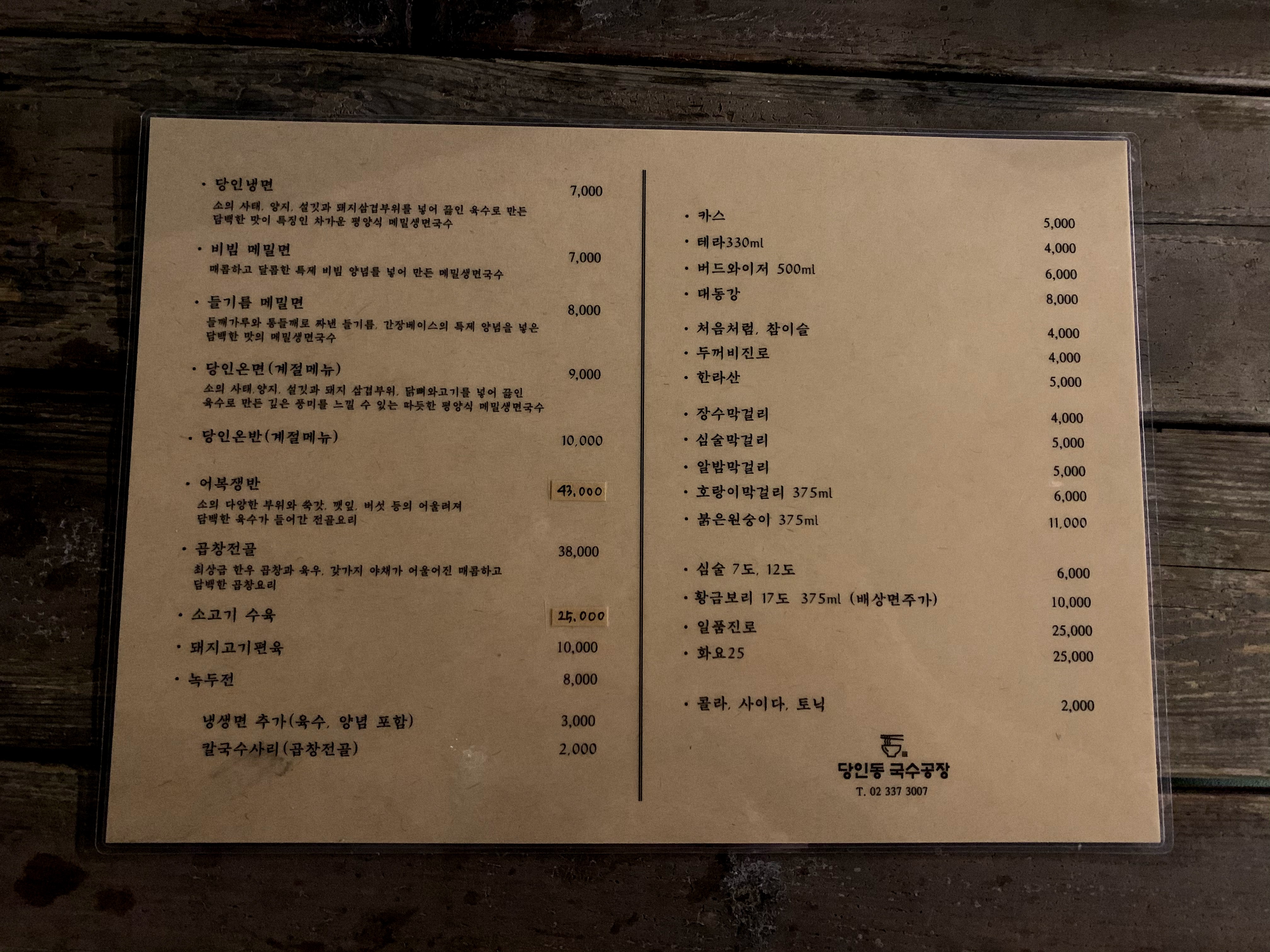 오래된 가옥의 느낌을 그대로 살린 당인동 국수공장의 외관. 가을밤 날씨가 예술이다 보니, 손님 전부가 바깥 테이블에 자리하고 있었다. 날이 쌀쌀해지면서 곱창전골이나 어복쟁반을 시키는 테이블도 많았는데, 우리는 크게 배가 고프지 않았기 때문에 국수맛집 당인동 국수공장의 대표 메뉴인 메밀국수 단품 두 가지를 먹어보기로 했다.