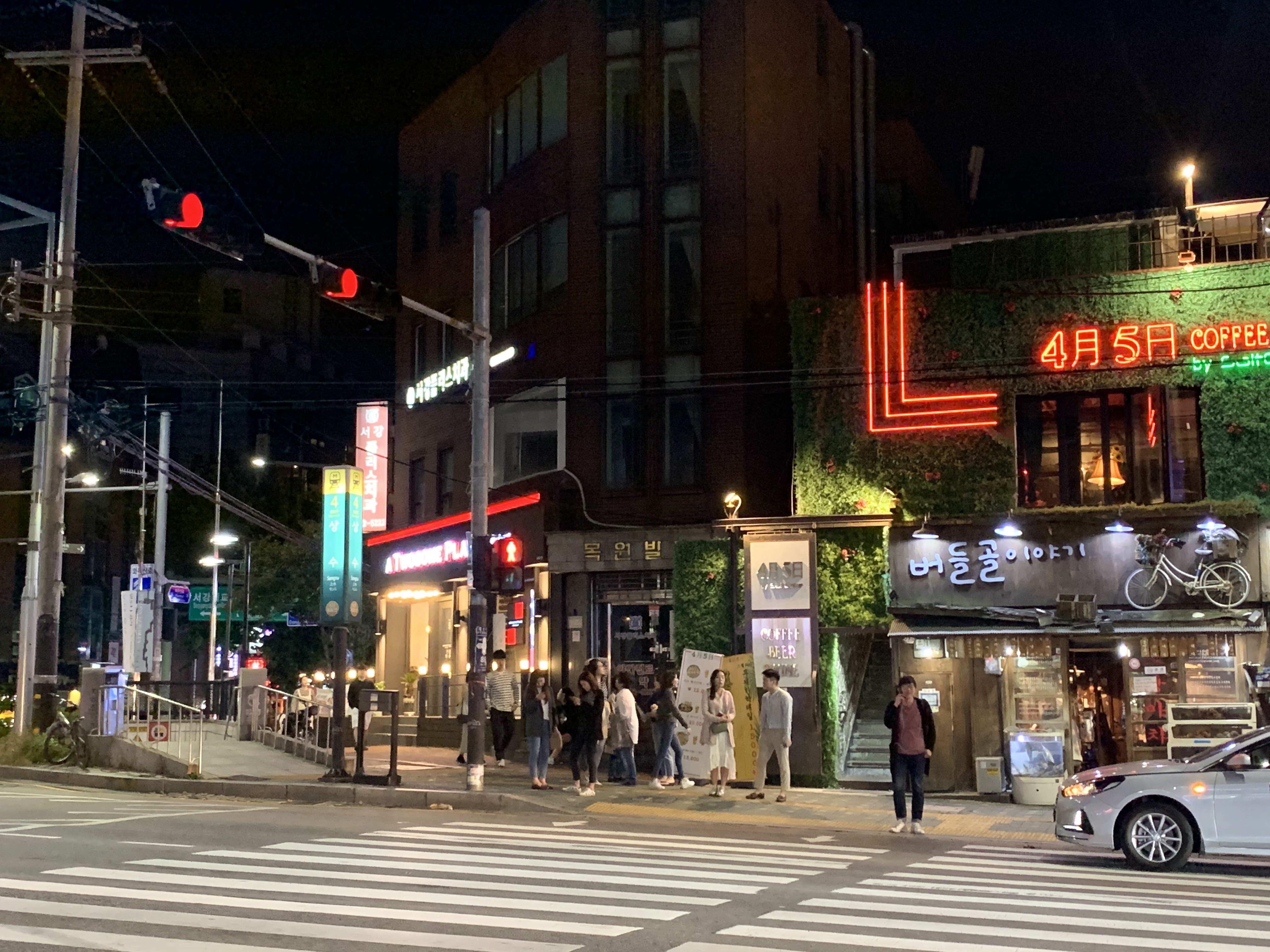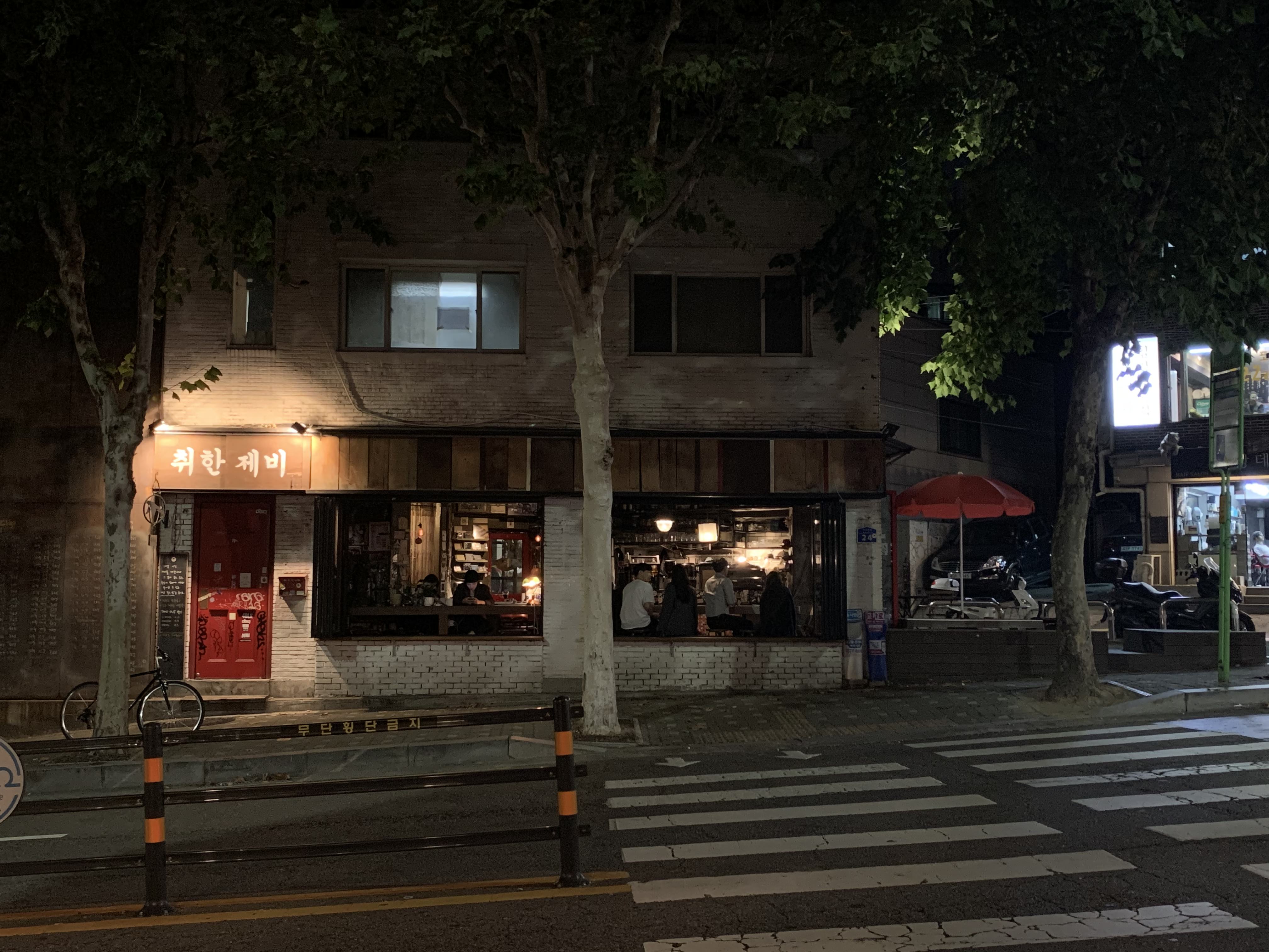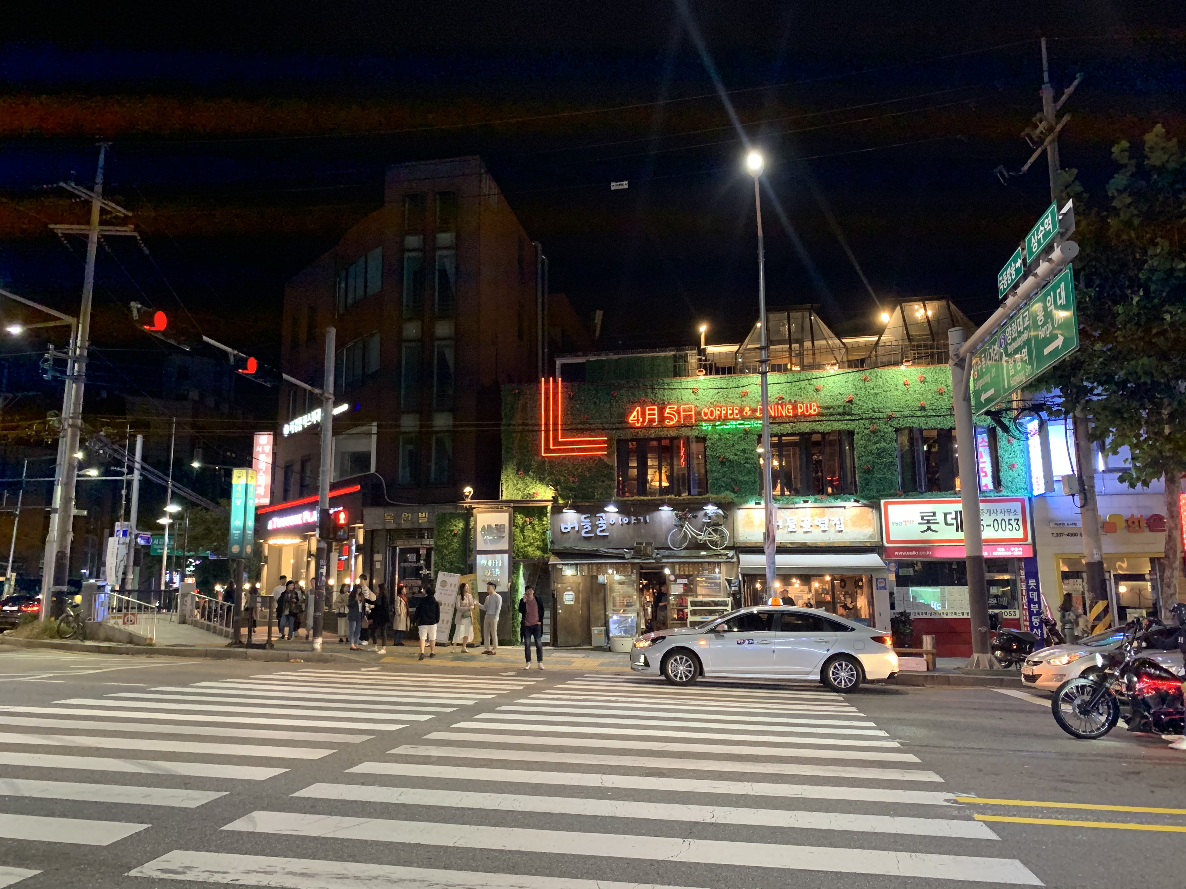 저 건너편 2층 가게는 자주 상호와 인테리어가 바뀌는 느낌이 없지 않아 있다. 여기에서 길 건너 왼편 4번 출구 방향으로 직진하면 된다. 역에서 가까운 것을 좋아한다면 이 근처에도 상수역 맛집이 많으니 이쪽에서 식사를 해결해도 좋다.