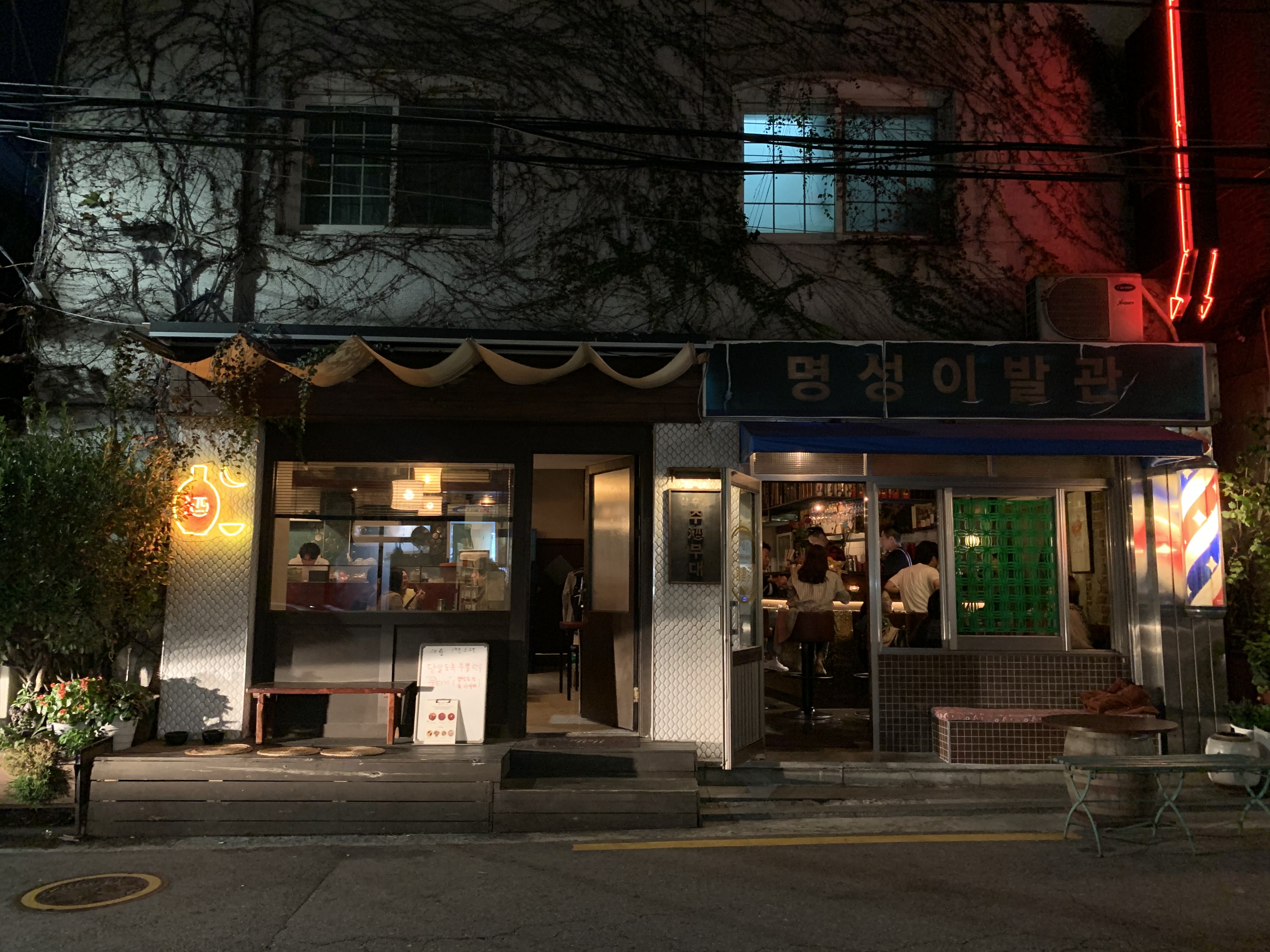 바로 '술 주' 자를 쓰는 주(酒)무대. 주무대 오른편으로는 오래된 이발관의 레트로 감성을 살린 주점도 분위기가 좋아 보인다. 이날 주무대는 소주를 한창 달리고 계시던 시끄러워 보이는 팀이 중앙에 자리하고 있어 다음을 기약하기로 했다.