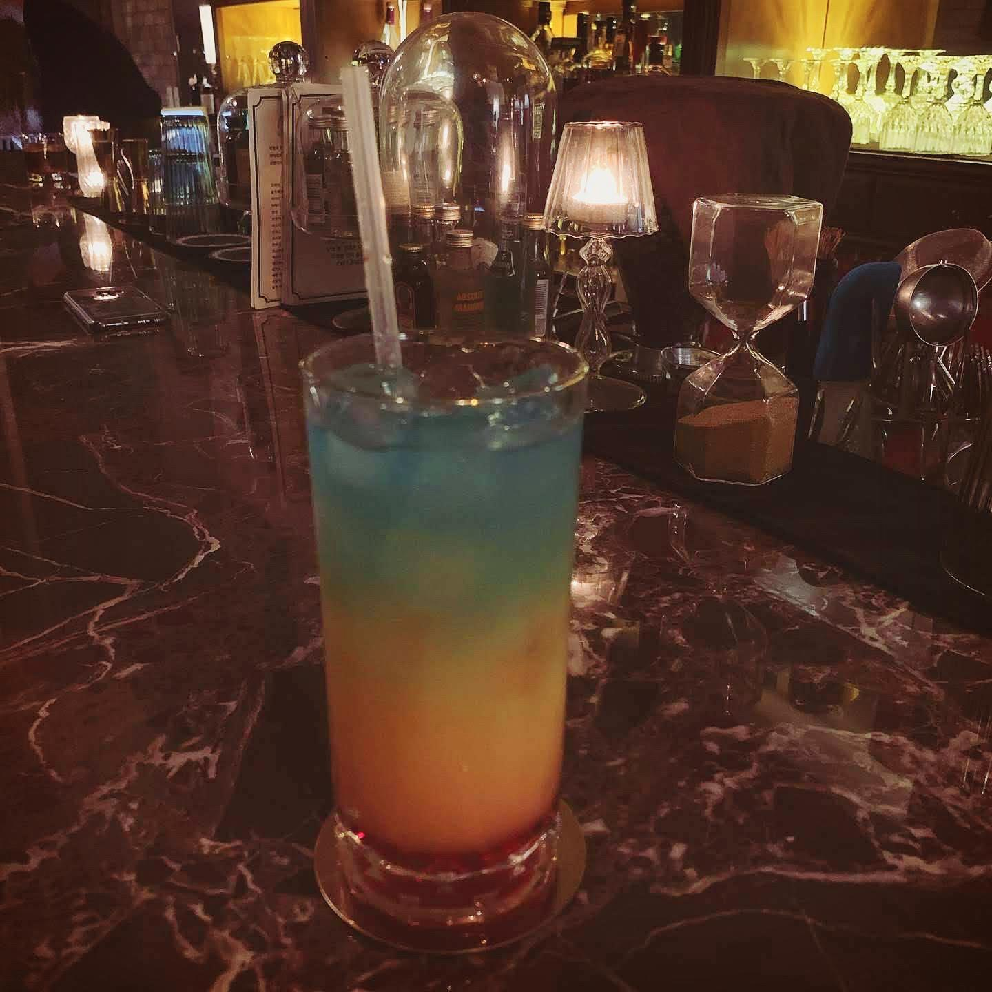 남자친구가 주문한 냉정과 열정사이. 보드카를 베이스로 레몬과 오렌지주스, 체리 등의 과일향이 가득하다. 아래 붉은 시럽까지 모두 섞어 마셔야 맛있다고, 바텐더 분께서 친절히 말씀해 주셨다.