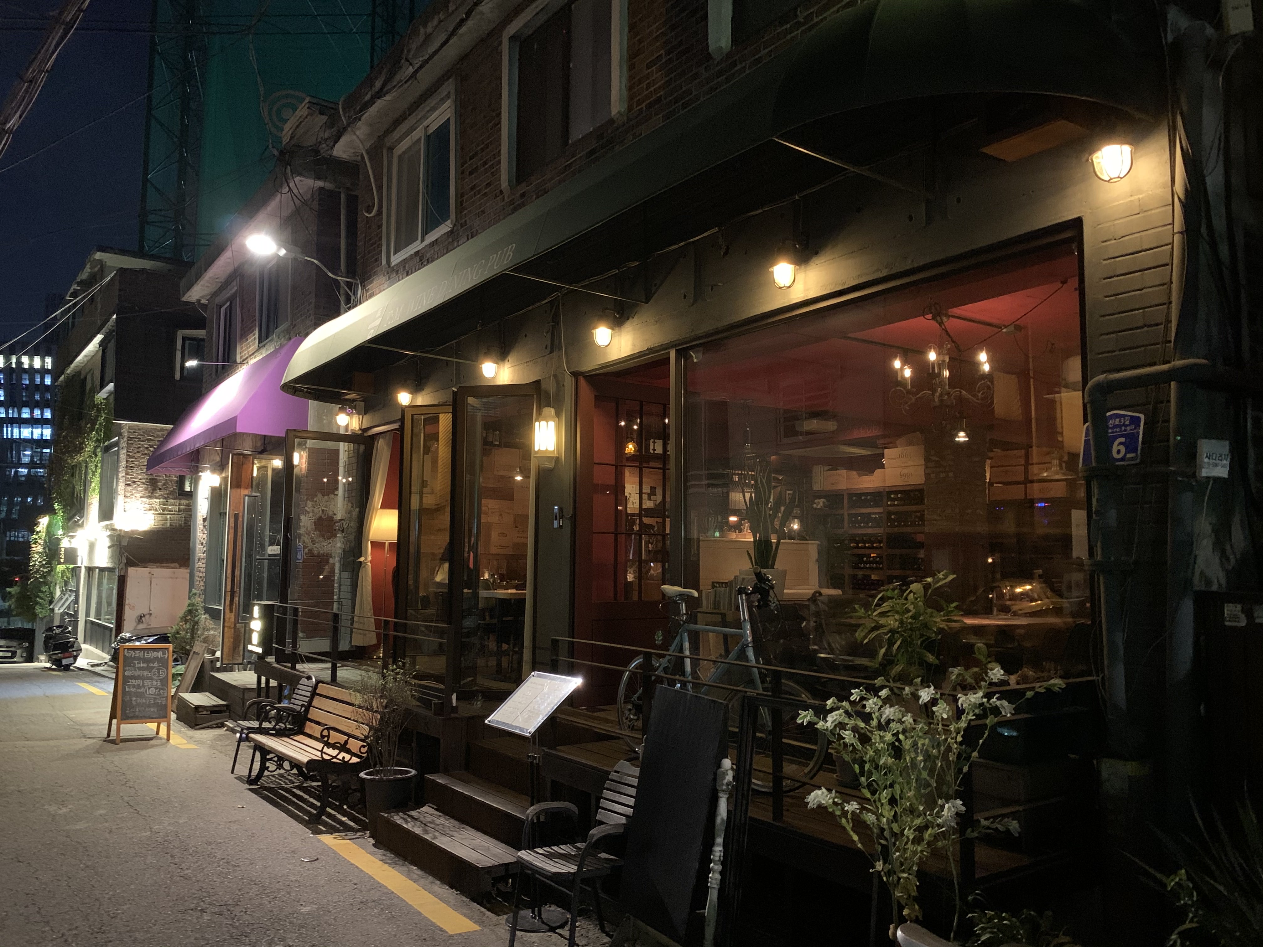 10m만 걸어가도 가을밤을 만끽할 수 있는 루프탑 펍들이 심심치 않게 보인다. 맛집의 기본형, 고깃집들도 많고, 해물 포차나 미식 주점도 즐비한 서울에 가볼만한 곳 대표주자 상수 카페거리.