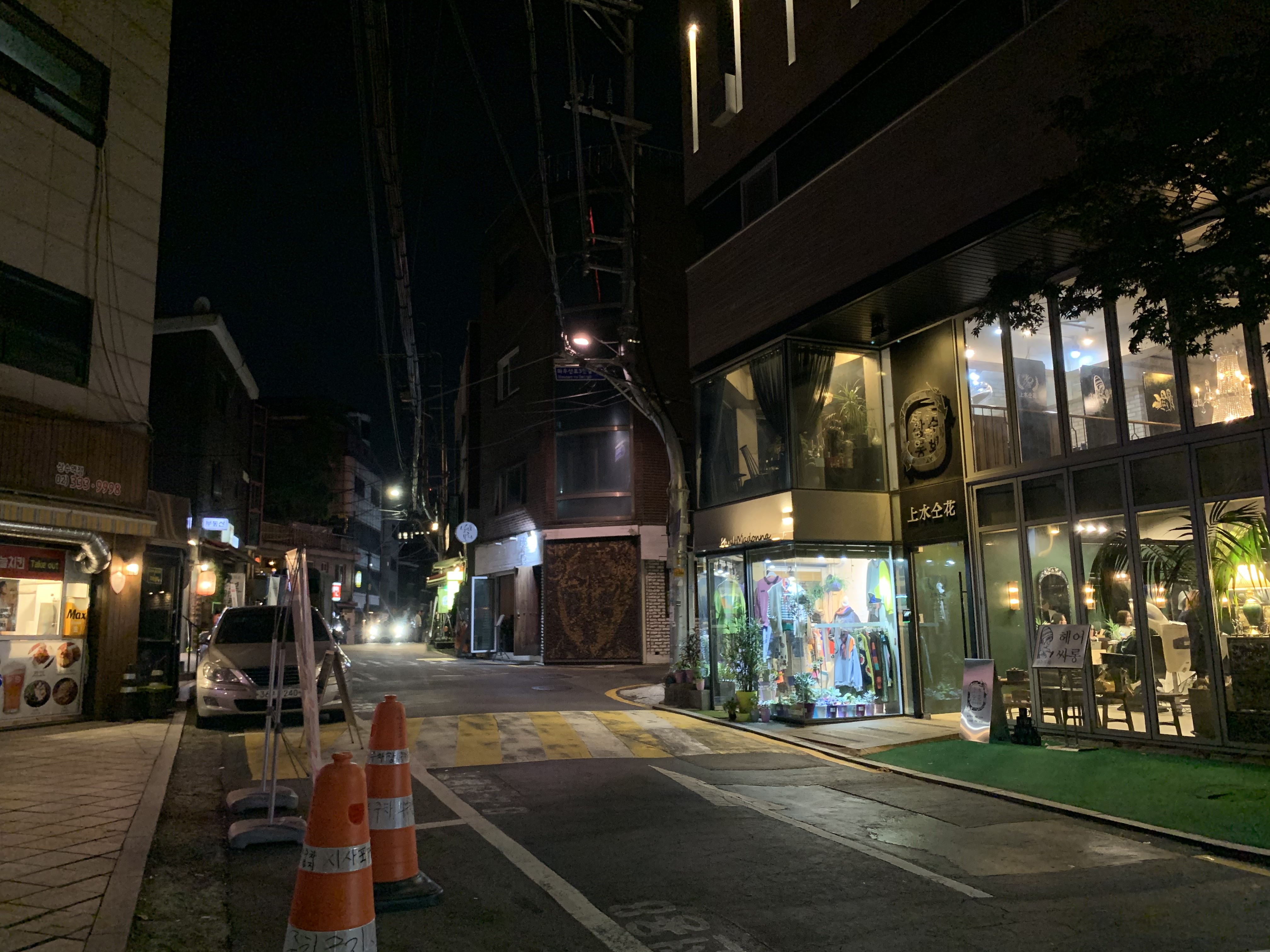 상수역 4번 출구에서 GS25까지 걸어 올라가야 하는데, 가는 길 건널목 건너편에도 분위기 있는 가게들이 많다.
