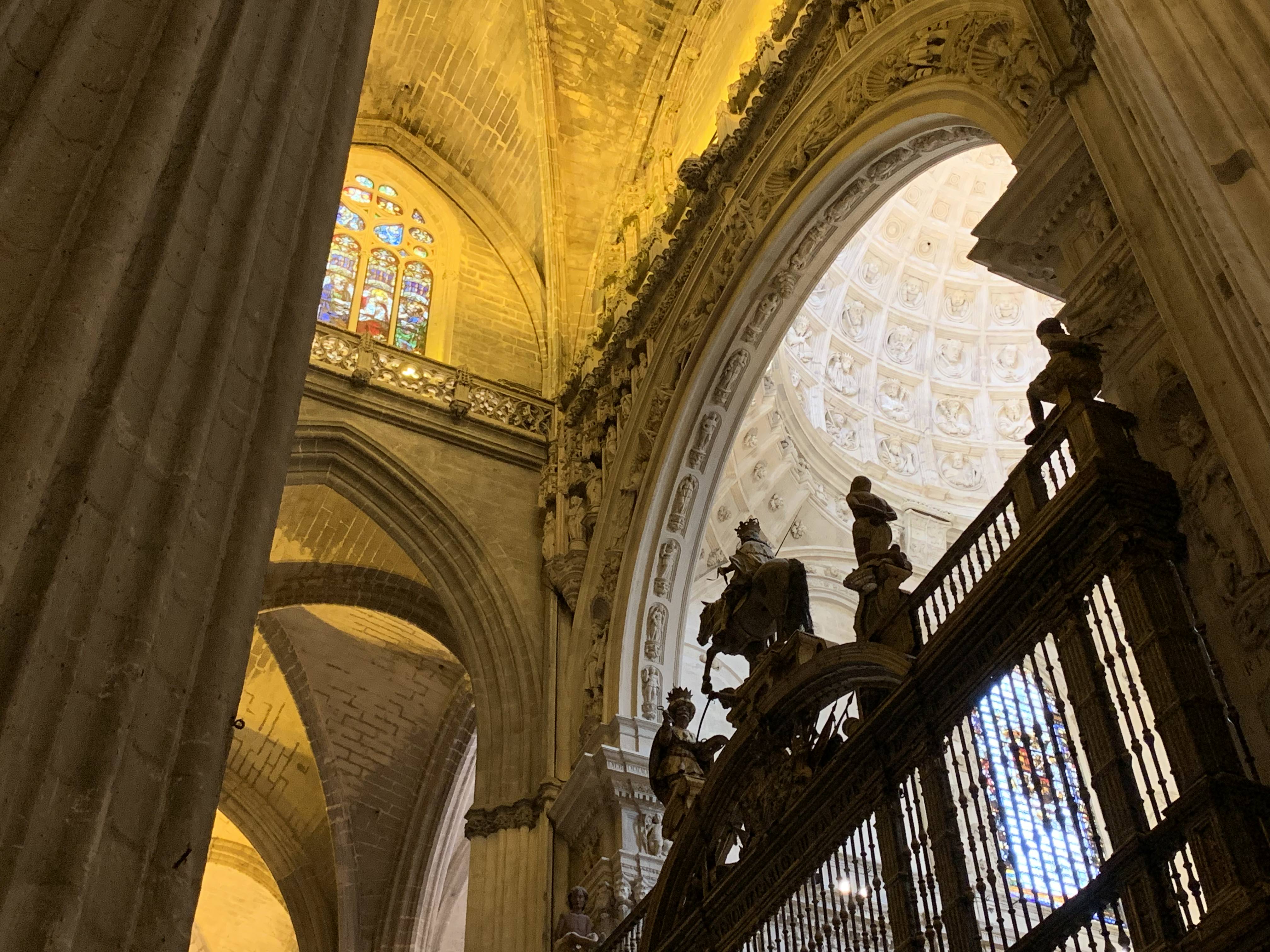 진귀한 선물을 바치고도 공주를 얻지 못한 불쌍한 이집트 왕자의 이야기를 뒤로 하고, 세비야 대성당 안에 들어섰다. 톱니바퀴처럼 맞물려 금방이라도 돌아갈 것 같은 천장의 조각을 보니 숨이 턱 멎는 듯했다. 층고가 주는 공간감이 가히 압도적이다. 성 베드로 대성당과 세인트 폴 대성당 모두 가보았지만 건축물 자체에서 오는 위압감은 세비야 대성당이 가장 강렬한 것 같다.