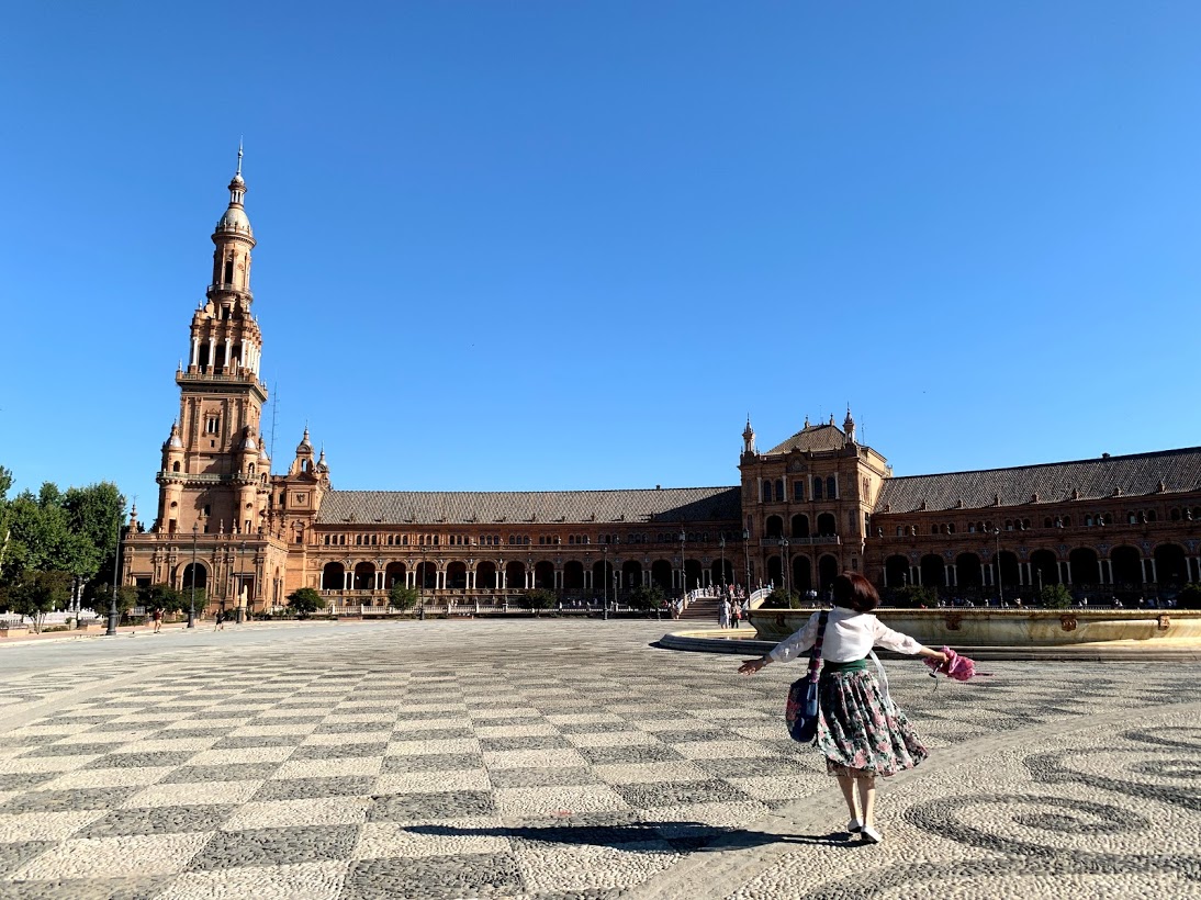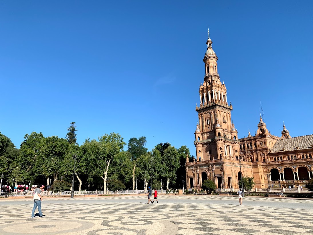 스페인 포르투갈 패키지여행 6일 차를 꽉 채운 세비야 여행. 단연 스페인 광장과 세비야 대성당이 세비야 여행의 하이라이트이다. 특히 세비야 대성당은 바티칸의 성 베드로 대성당, 런던의 세인트 폴 대성당과 더불어 세계 3대 성당으로 꼽히는 명소이다. 세비야의 5월 말 기온은 한낮 37도까지 치솟기 때문에 햇빛 피할 곳이 전혀 없는 스페인 광장에 서둘러 도착했다.