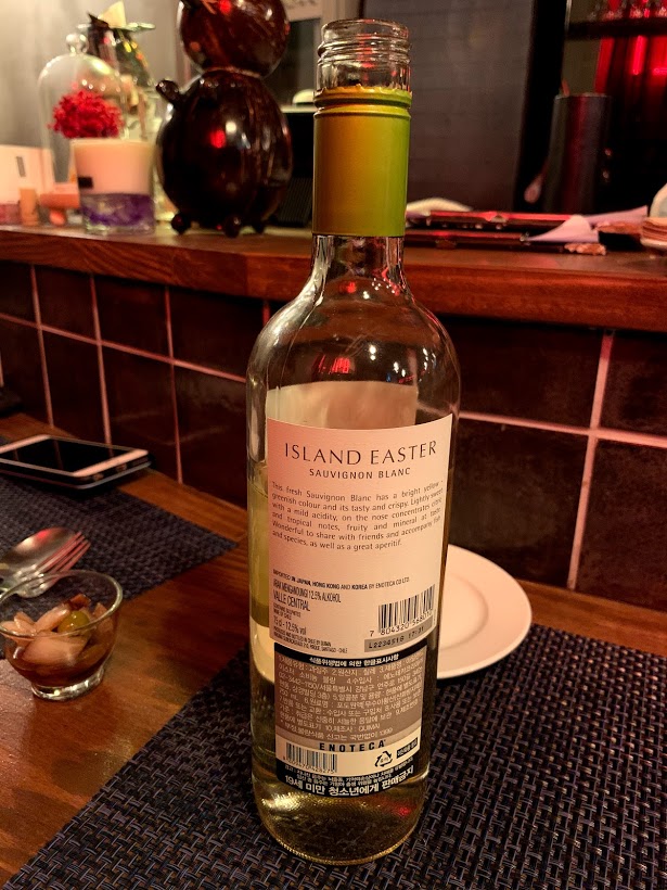 이날은 스파클링이나 레드 와인보다는 화이트 와인이 어울릴 것 같아서 아일랜드 이스터 쇼비뇽 블랑을 주문했다. 아일랜드 이스터 멜롯과 더불어 제20회 부산국제영화제 공식 만찬주였다고.
