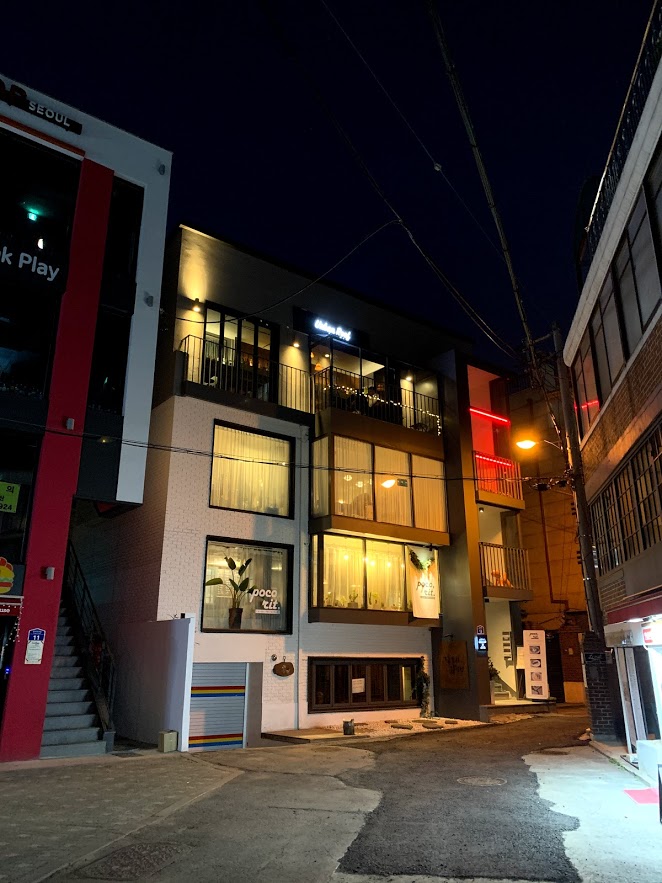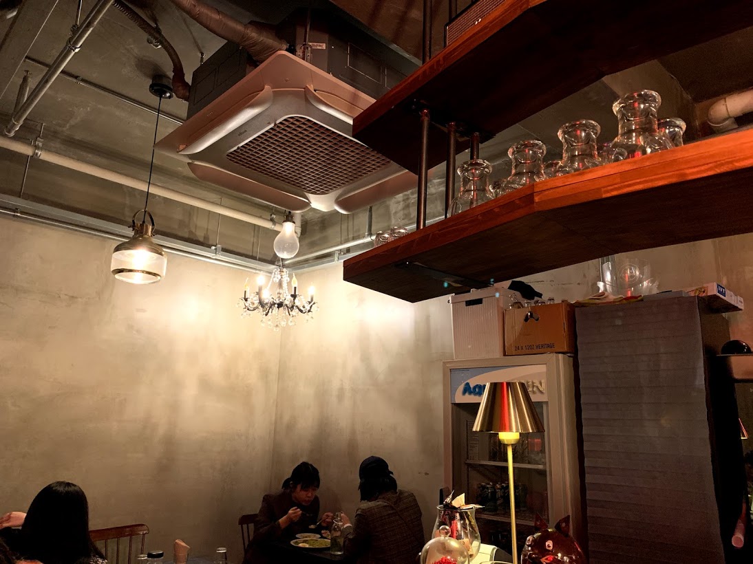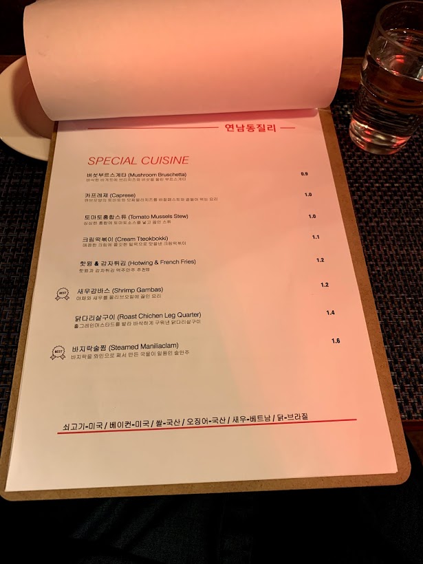 바람이 차가워지면서 맥주보다는 와인에 더 꽂혀 있는 우리 커플을 저격하는 와인 트리 옆으로. 붉은 조명이 돋보이는 레스토랑이 보였다. 메뉴판을 자세히 보지는 않았지만 가장 가까운 전면을 주방에 할애한 것만 보아도 조리 과정에 자신이 있는 것처럼 느껴져서 끌리듯 들어가게 되었다.