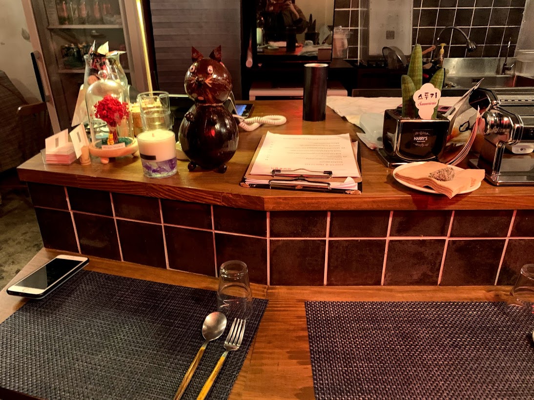 너무 배가 고파서 앞에 놓인 소품을(보는 척하며 셰프님의 뒷모습을) 하염없이 쳐다보는 와중. 손님이 많은데 사장님은 두 분뿐이라, 정말 바쁘게 손을 놀리는 모습이 베테랑의 포스를 풍겼다.