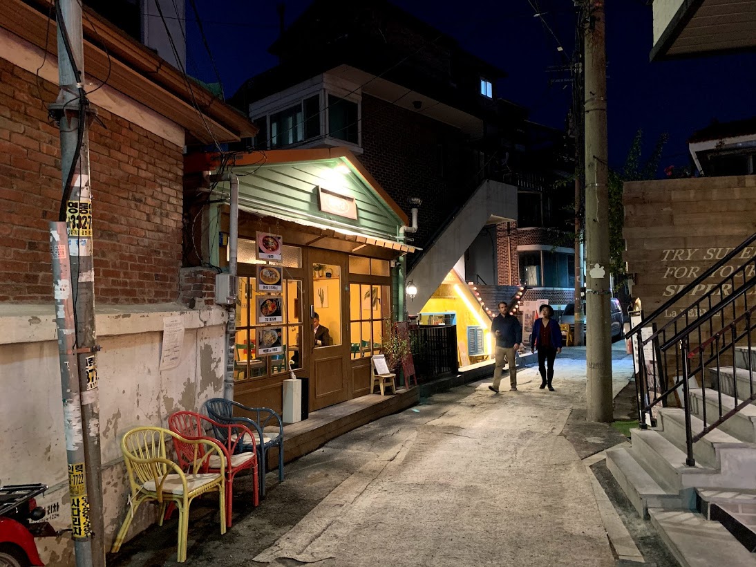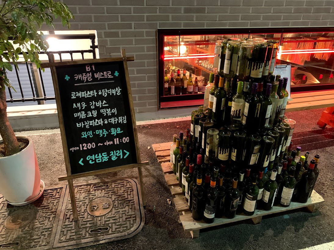 연남에는 웬만한 서울 데이트코스 추천 목록에서 빠지지 않는 우리의 아지트, 진화로가 있지만 이날은 맥주나 사케보다는 와인을 마시고 싶어서 좀 더 먼 길로 나가보았다. 그중 이 골목이 왠지 정감이 가서 여기에 있는 가게들 중 하나를 가볼 생각으로 이곳저곳의 메뉴판을 들여다보았다.