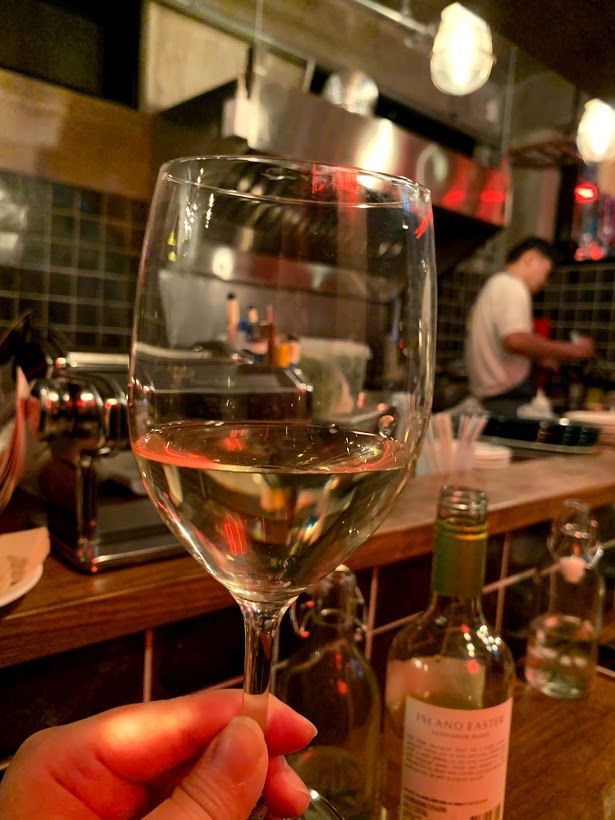 풀잎색이 청아한 아일랜드 이스터 쇼비뇽 블랑. 우리가 앉은 뒤로도 손님이 많이 와서 대기를 하거나 포기하고 돌아가는 분들도 있었다. 안쪽 테이블 몇 군데와 바 자리 각각 두세 팀이 앉으면 꽉 차는 구조여서 세 명부터는 버겁고 네 명 이상은 미리 문의를 해야 앉을 수 있을 것 같았다. 곧 데이트 장소로 최적이라는 것!