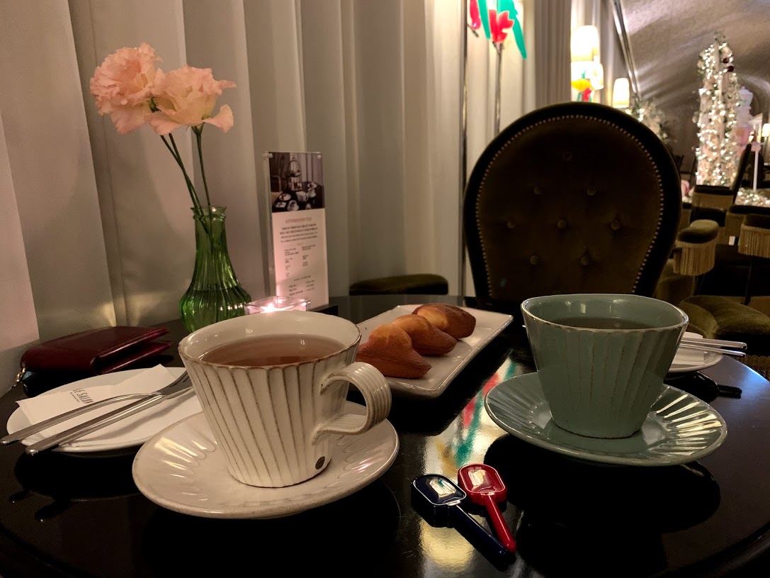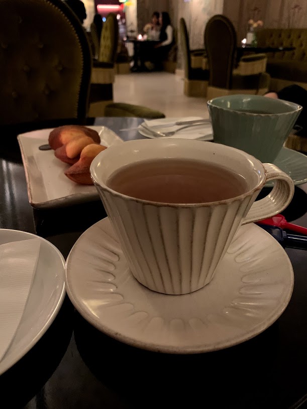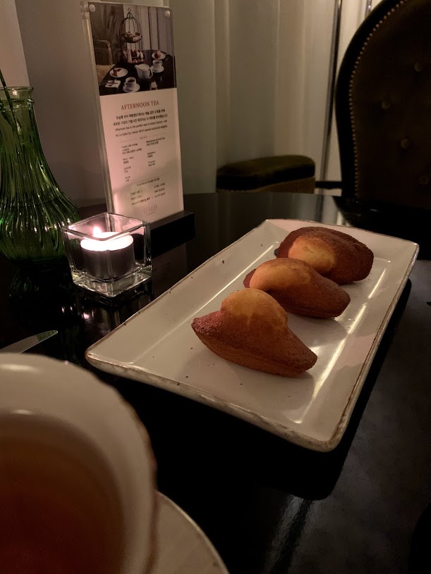 창 밖의 뷰는 그닥이었지만 아예 막혀 있는 것보다는 나아 보였다. 이윽고 차와 마들렌이 준비되었다. 객실에서 언박싱한 이도도자기와 같은 찻잔에 서비스되었고, 막 구워진 겉은 바삭하고 속은 촉촉한 마들렌 세 피스가 함께 구성되어 있었다. 다른 하나는 평균적인 맛이었고 얼그레이 프렌치 블루는 꽤나 괜찮았다.