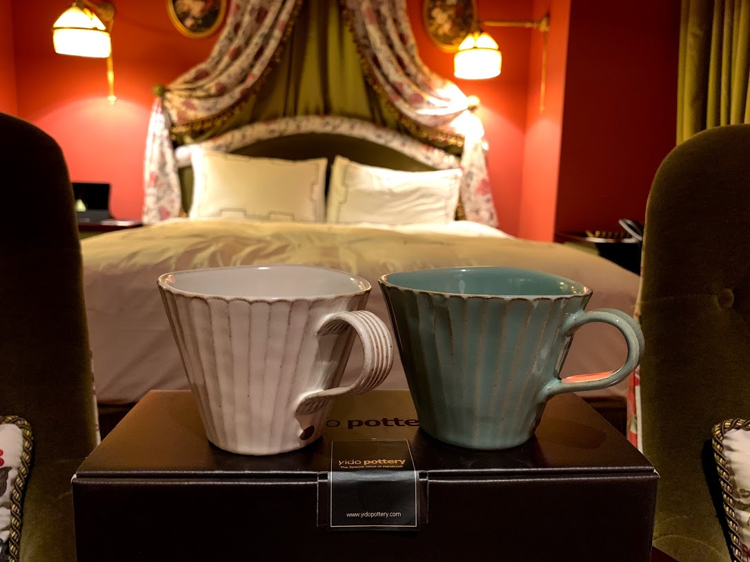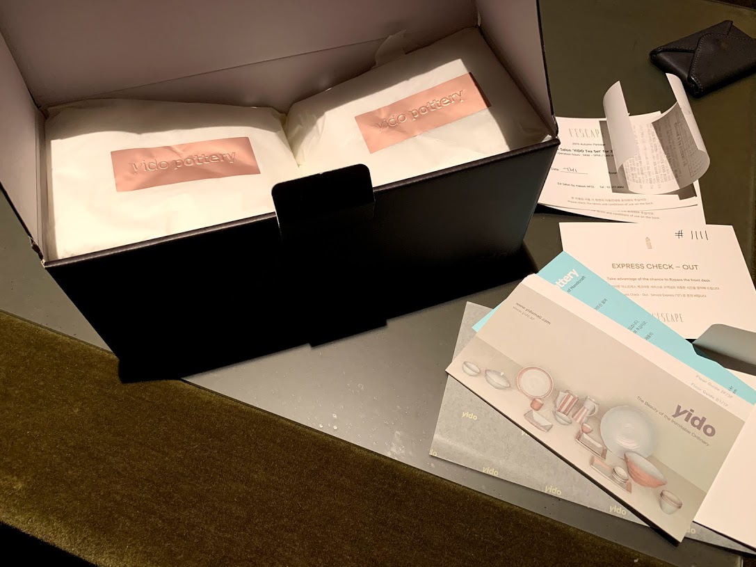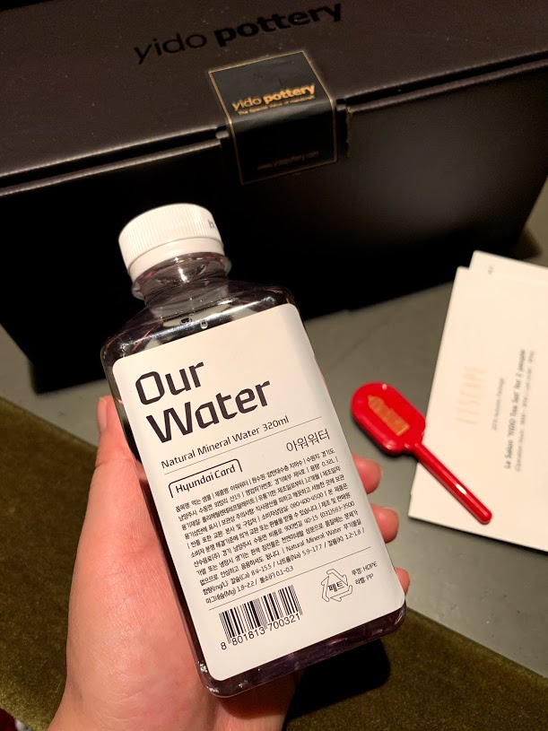 현대카드 호텔위크 패키지에 마지막 턱걸이로 신청을 한 터라 어떤 내용의 패키지인지 자세히 알아보지 않았었는데, 이도도자기 찻잔 두 피스 세트와 7층 카페에서 주문할 수 있는 티 2잔, 마들렌 세트가 포함되어 있었다. 앙증맞은 현대카드 생수도 함께 들어있었다. (이 지독한 브랜드 장인들...)