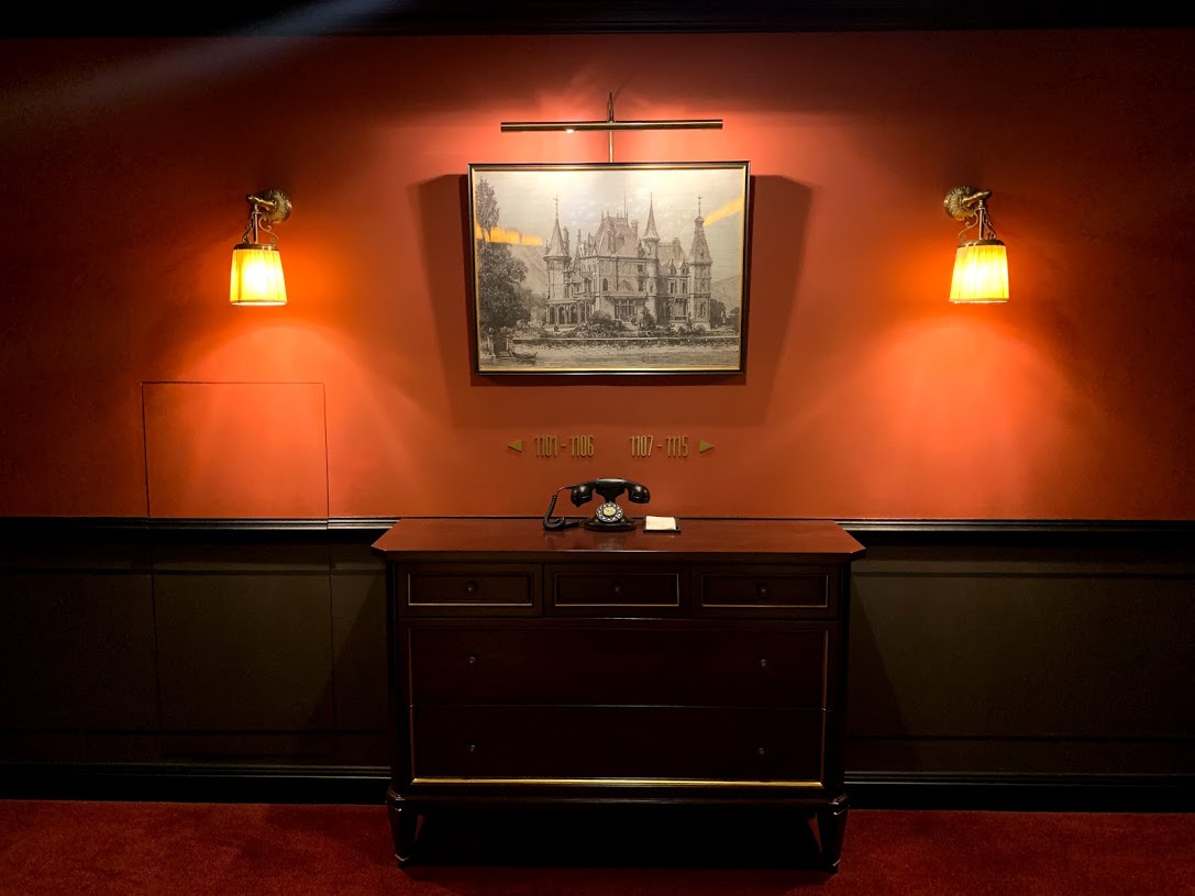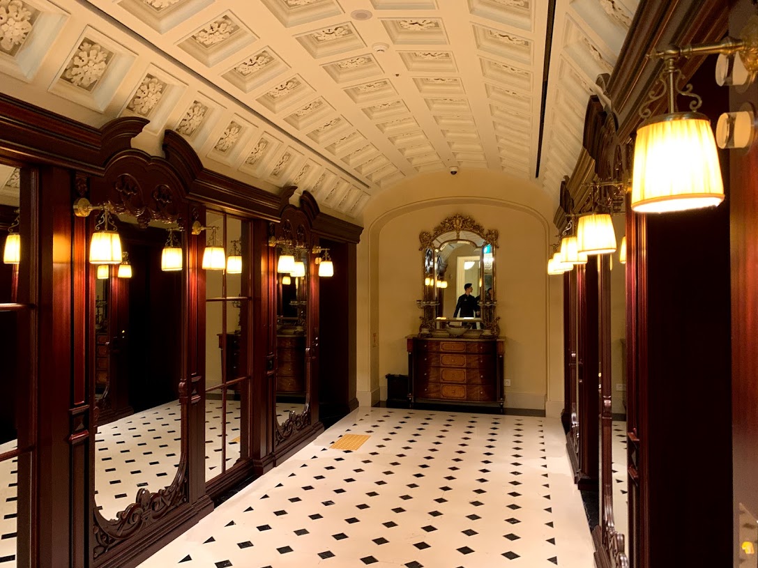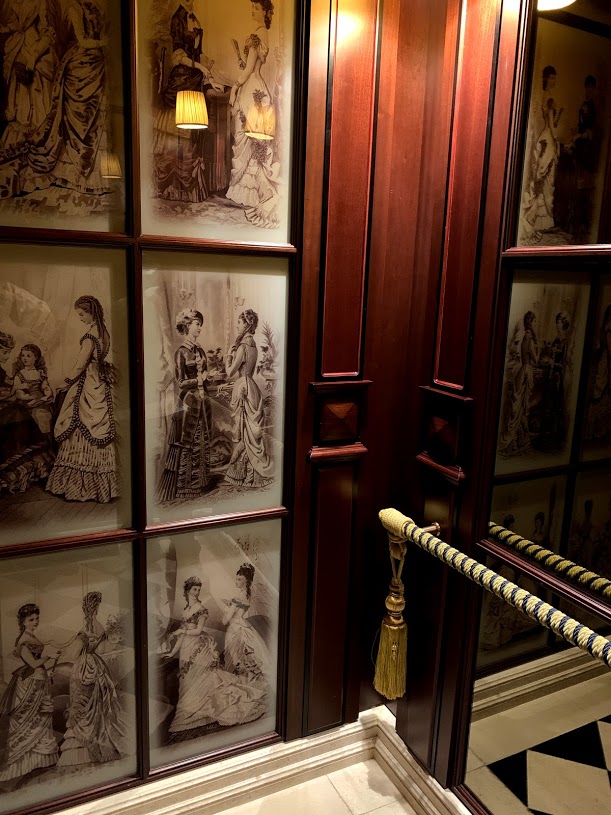 앤틱한 분위기의 복도에서 엘리베이터를 기다리는데, 뭔가 효율적으로 운영되고 있는 것 같지는 않았다. 엘리베이터를 탈 때마다 오래 기다려야 해서 조금 불편한 감이 있다. 엘리베이터 벽면도 프랑스 귀족을 그린 세밀한 펜화로 장식되어 있어 과연 레스케이프 호텔의 감성을 충분히 느낄 수 있었다. 안내 멘트도 프랑스어로 나올 정도의 디테일이라니.
