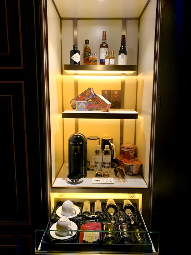 미니바에 구비된 물품들도 하나하나 레스케이프 호텔 감성에 맞는 것들이었다. 가장 마음에 들었던 것은 와인잔, 양주잔, 물 잔을 별도로 준비해 두었다는 점이었다. 의외로 더 좋은 호텔에서도 이런 부분을 신경 안 쓰는 곳들이 있다 보니, 어울리지 않는 잔에 준비한 술을 마셔야 하는 경우가 왕왕 있으니 말이다.