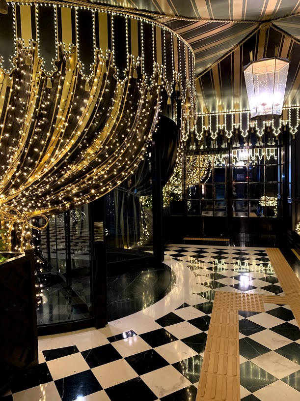 뮤지컬 공연장에 입장하는 것 같은 느낌을 주는 레스케이프 호텔 입구. 크리스마스 데이트 추천을 할 만한 화려함의 진수를 보여준다. 로비에 들어서면 바로 우측으로 계절마다 바뀌는 포토존이 있다. 눈을 표현한 소금 같은 알갱이들이 인상적이었다. (밟으면 사각사각한 게 은근 뽀득거리는 눈의 느낌이 난다.)