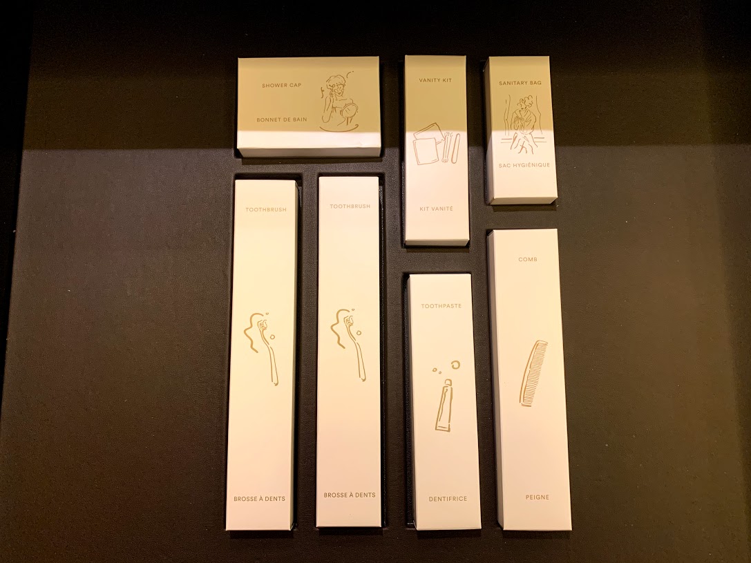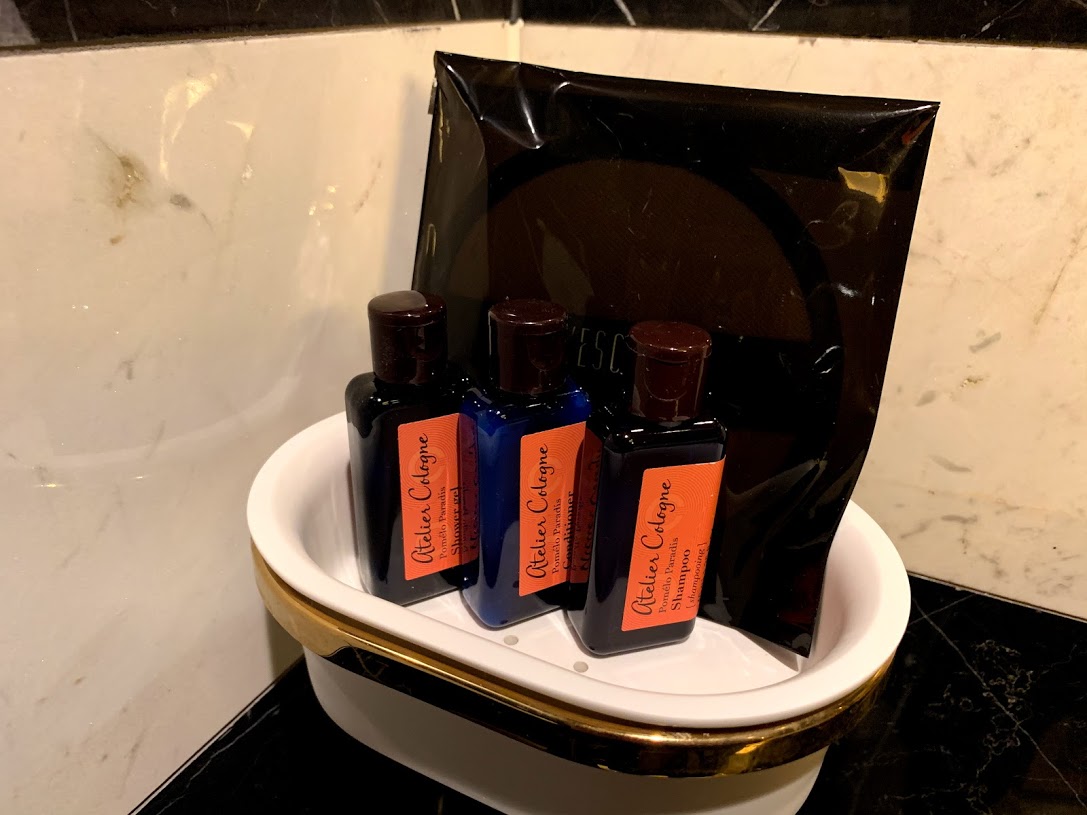 어매니티도 수준급인데, 아뜰리에 코롱 제품 중 시트러스 향이 나는 종류였다. 손을 끼워 세안할 수 있는 클렌징 타월도 샤워실과 세면대, 욕조에 각각 놓여있어 굉장히 요긴하게 쓸 수 있었다. 향이 마음에 들어 남은 바디로션은 사무실에서도 쓰고 있다.