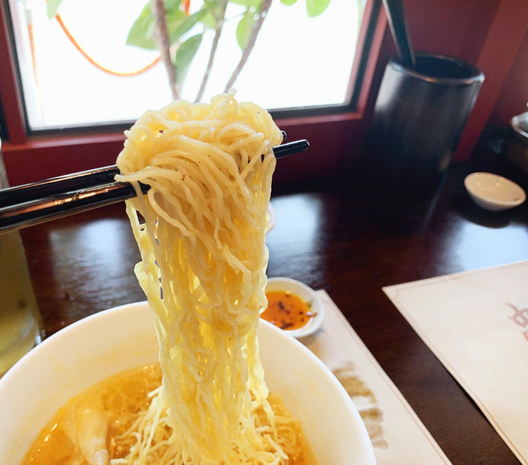 완탕면과 마실 것의 조합은? 조금 심심한 편. 그래서 고추기름 가득한 라죠장과 적식초, 백후추의 마법이 필요하다. 백후추를 후춧후춧 뿌리고 한번 맛을 본 다음, 적식초를 1~2번 둘러준다. 라죠장을 국물에 섞은 후, 면과 완탕을 한입씩 먹을 때마다 조금씩 덧발라 가며 먹으면 제맛. 다 섞인 후에는 라죠장의 풍미가 살아나지 않으므로 약간 덜어 놓고 그때그때 찍어먹는 게 더 맛있다.