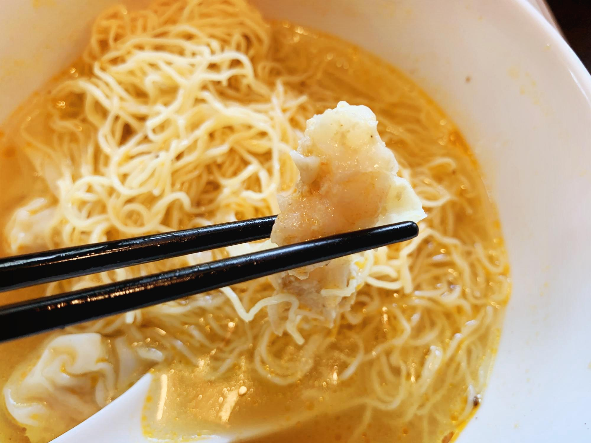 새우 완탕을 한입 베어 물면 탱글한 새우의 식감이 그대로 전해진다. 새우가 잘 보이새우? 🍤🍤🍤