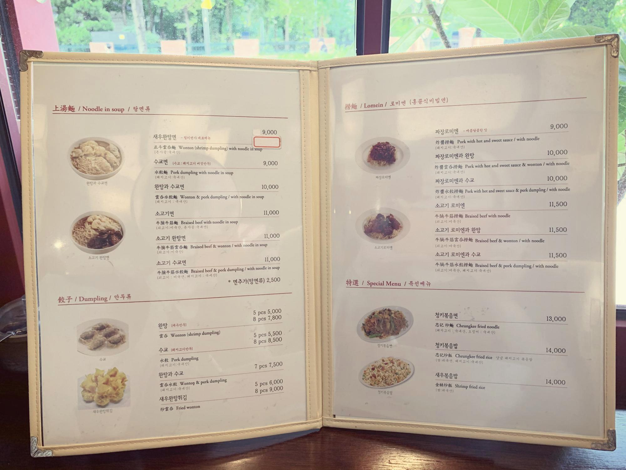 처음 온 것은 아니지만 괜스레 메뉴판을 펼쳐본다. 우선은 새우완탕면 (9,000원) 한 그릇, 그리고 생으로 된 마실 것(?) 한 잔. 청키면가는 미슐랭에서 선정한 홍콩의 10대 면 전문점에 이름을 올린 유명한 미식 브랜드이다. 한국에는 프랜차이즈 형태로 들어왔지만 계란면 등의 비법을 꽤 근사하게 전수받은 것 같다.