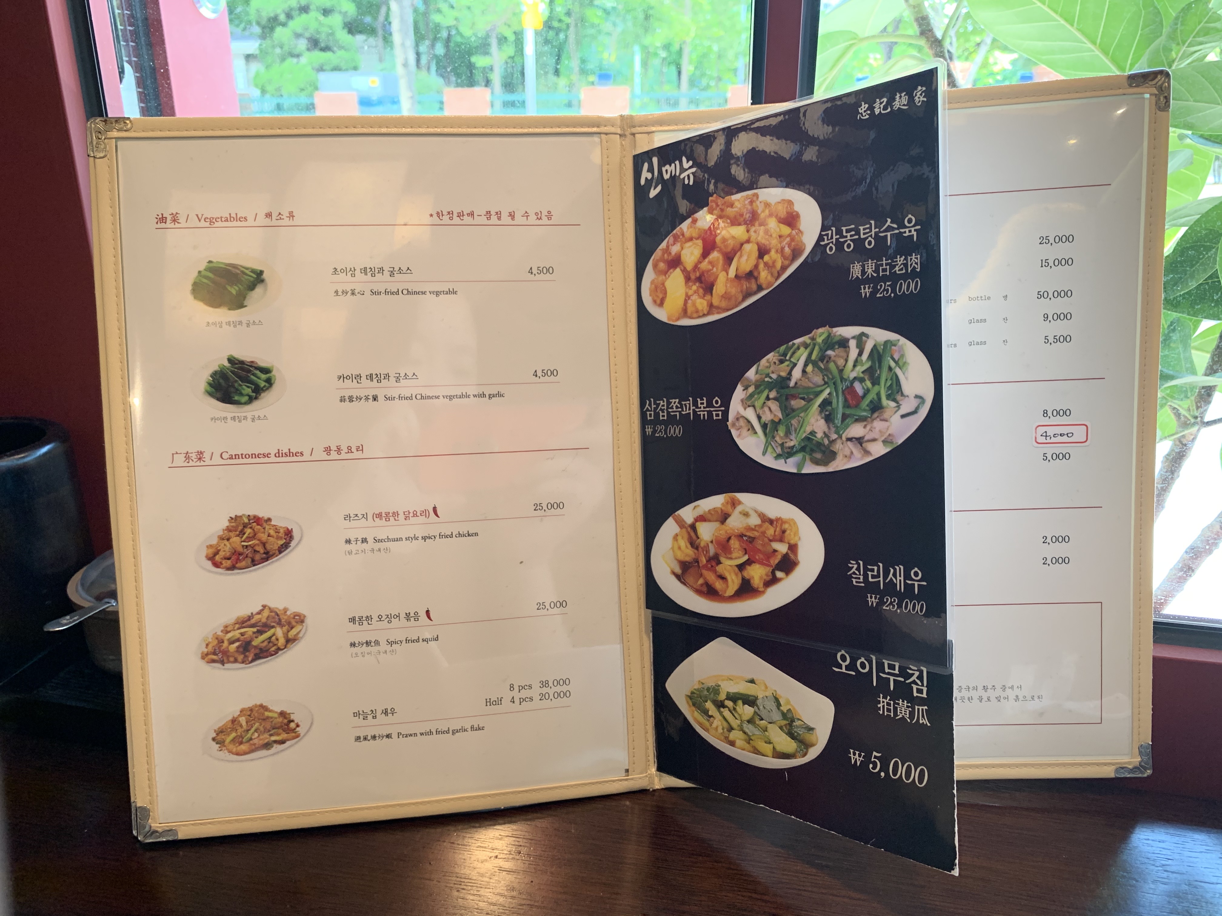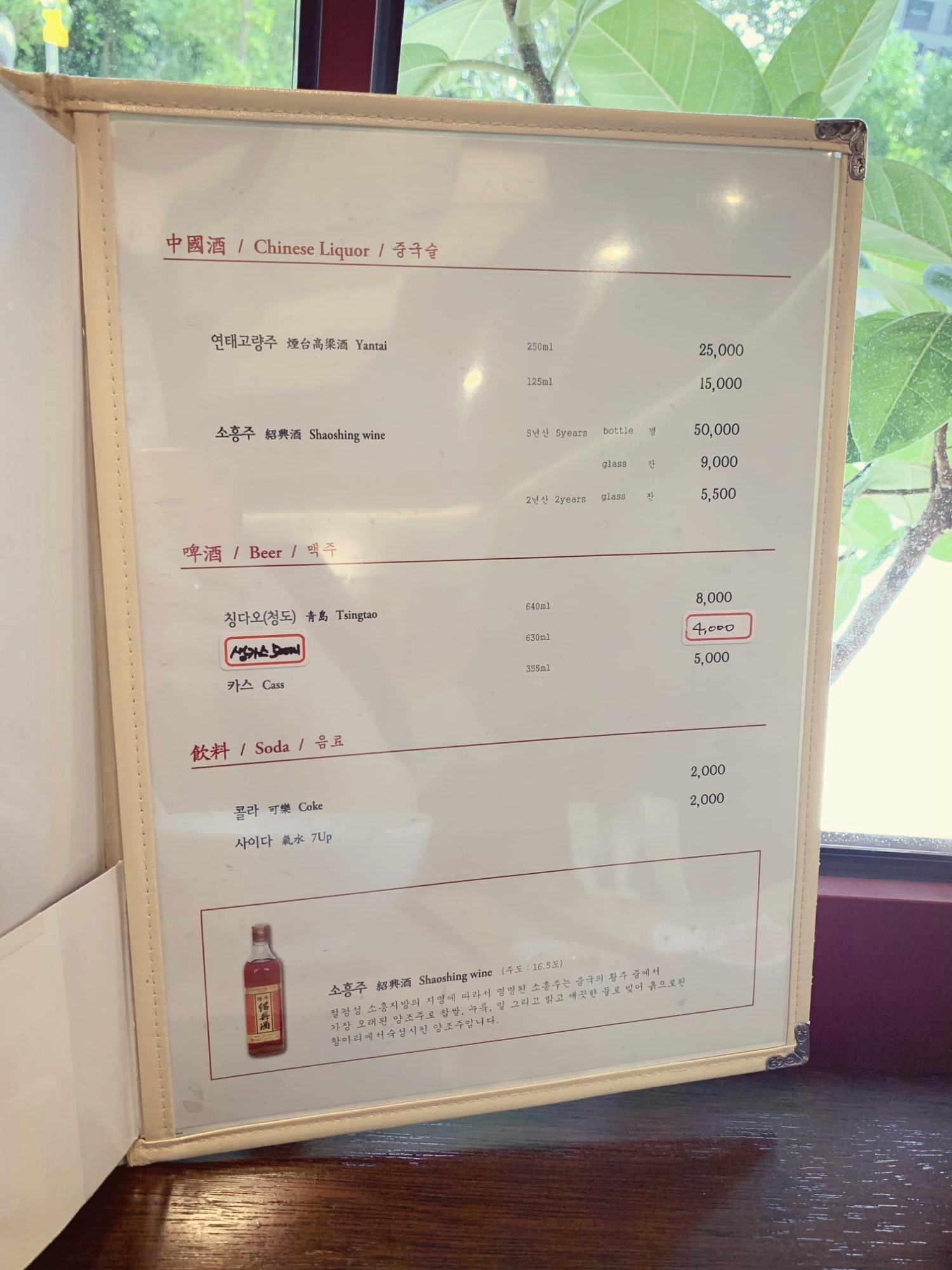 홍콩식 채소 데침요리 초이삼이나 카이란 정도를 사이드 디쉬로 주문할 수 있다. 여럿이서 온다면 매운 치킨인 라즈지를 먹어볼 수 있으련만... 오늘은 고독하게 단품 메뉴에 취해보자. 건대 양꼬치집에 가면 서비스로 주기도 하는 다진 마늘을 곁들인 오이무침도 있는데 5,000원이다. 이건 건대 가서 먹는 걸로...