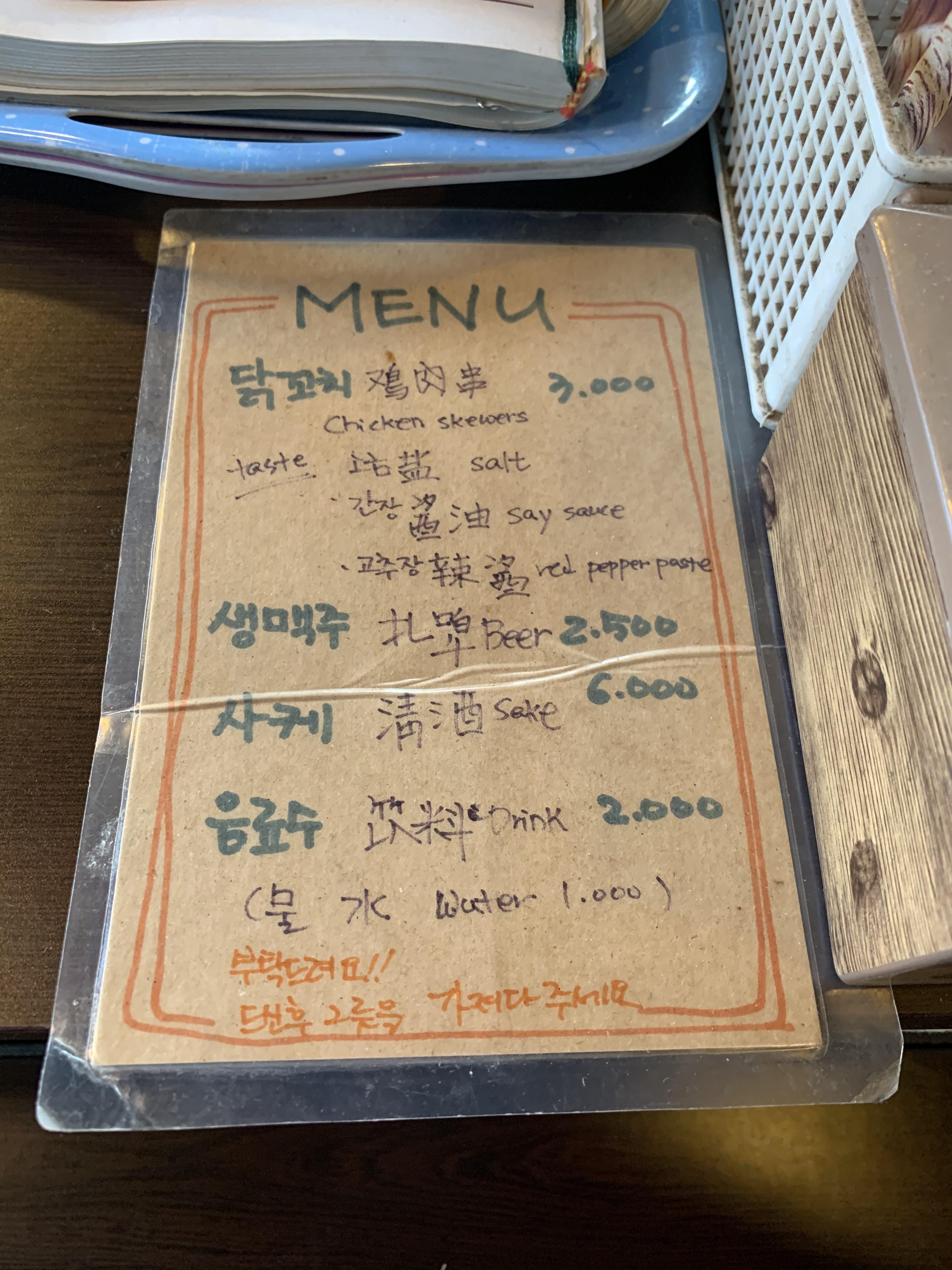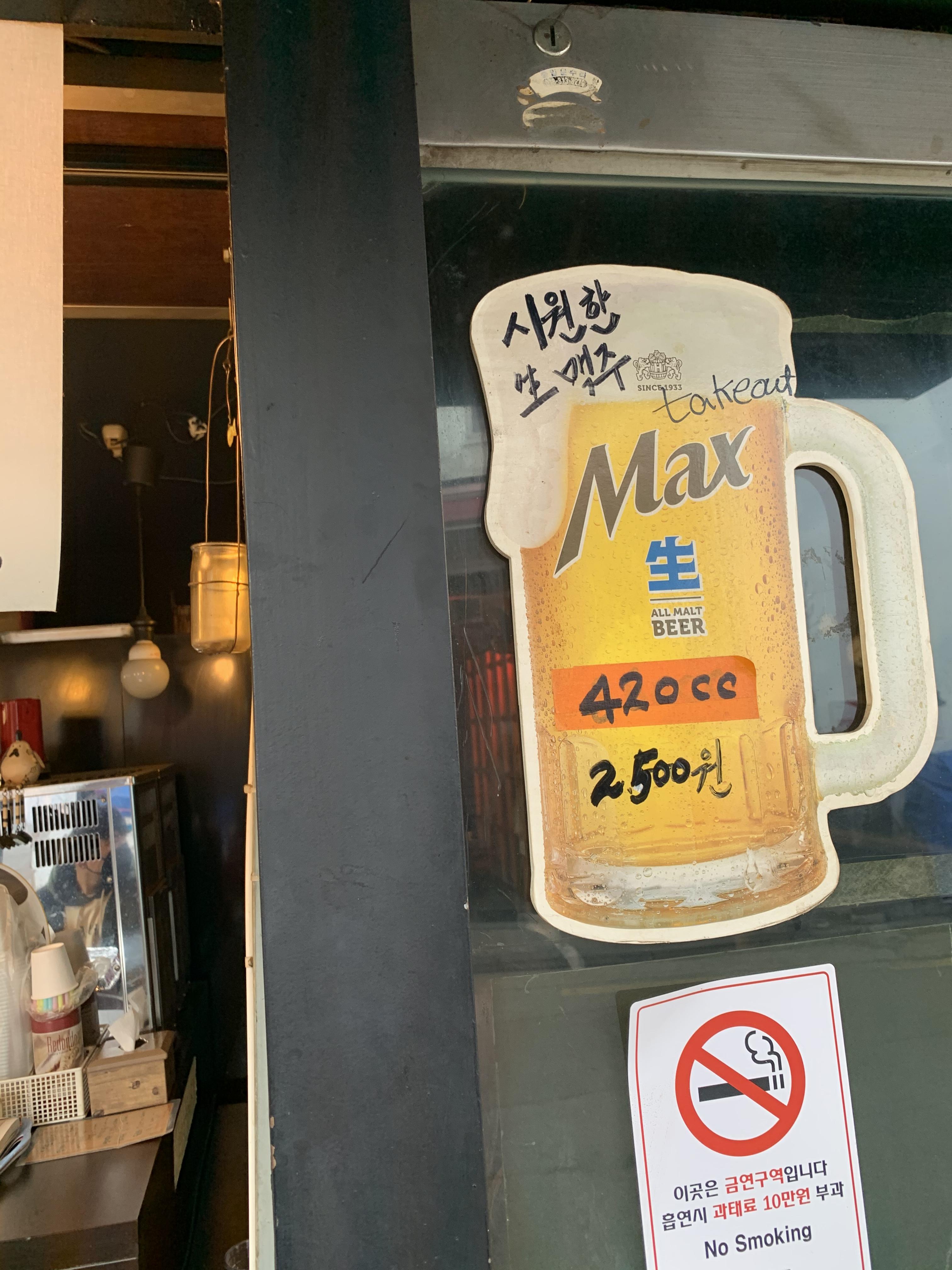 이곳은 닭꼬치도 정말 고퀄이지만 이 2,500원 밖에 안 하는 420cc 생맥주가 진짜 예술이다. 마지막 한 모금 마실 때까지도 톡 쏘는 탄산이 강렬히 남아있어 라거 아니면 스타우트, 극과 극을 추구하는 집사의 입맛에 딱인 것이다.