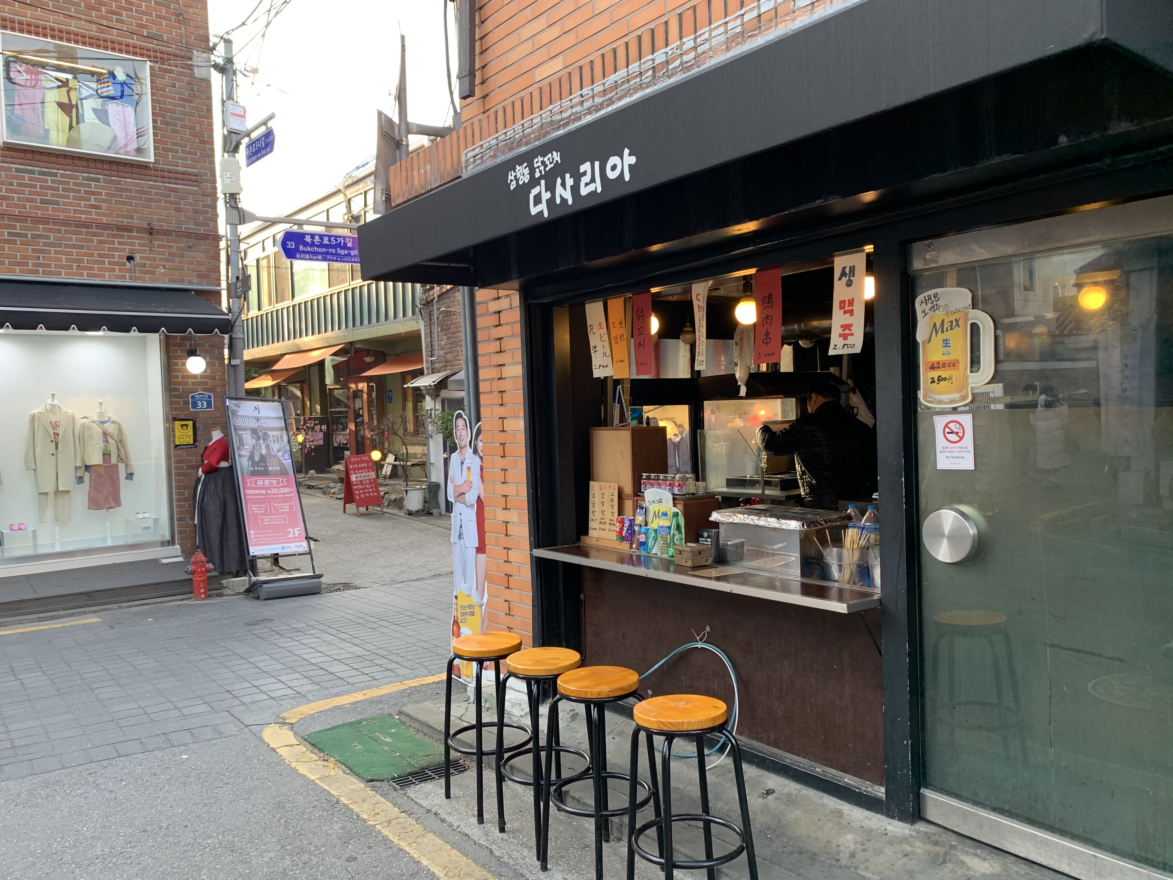 길을 걷다 생맥주 한잔이 간절해지는 날에는 삼청동에 들러보시라. 삼청동 닭꼬치 다사리아는 어느 계절이나 항상 같은 자리에서 고소하고 따뜻한 향으로 당신을 맞이해 줄 것이다.