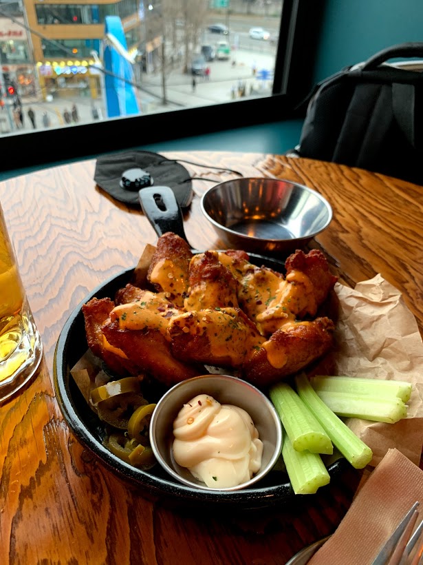 만원에 불과한 멕시칸 핫윙. 푸짐한 윙봉은 물론, 느끼하거나 달지 않으면서 계속 집어들게 만드는 소스와 샐러리까지 곁들여 나왔다. 이미 배가 부른 상태여서 기대하지 않고 들어간 이태원 맥주집에서 이런 고퀄리티 안주를 만날 줄 상상도 못 했다. 허브 향이 촉촉이 배어 있어 서빙된 팬의 온기가 가시기도 전에 순삭 해버렸다.