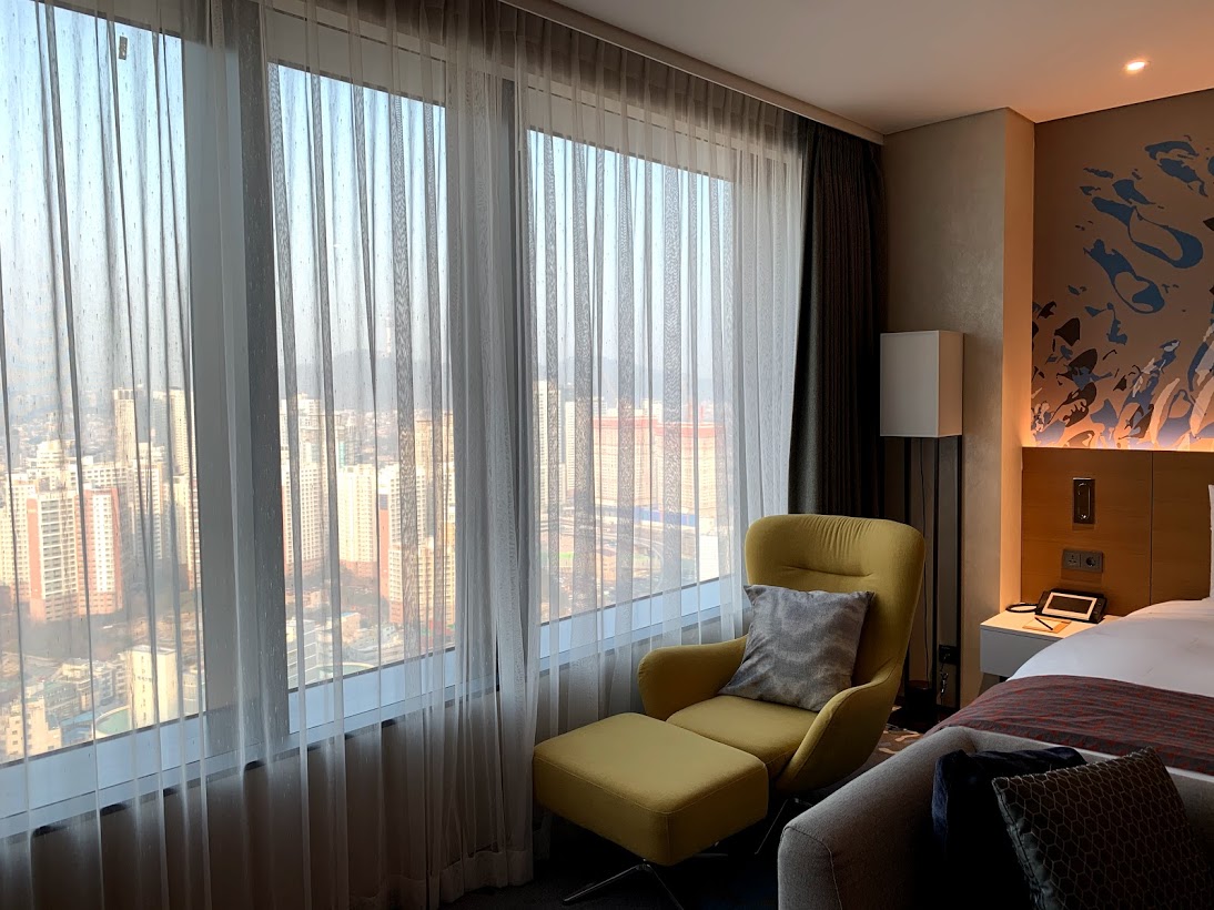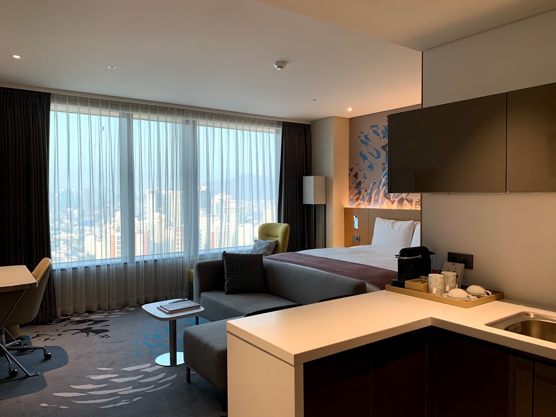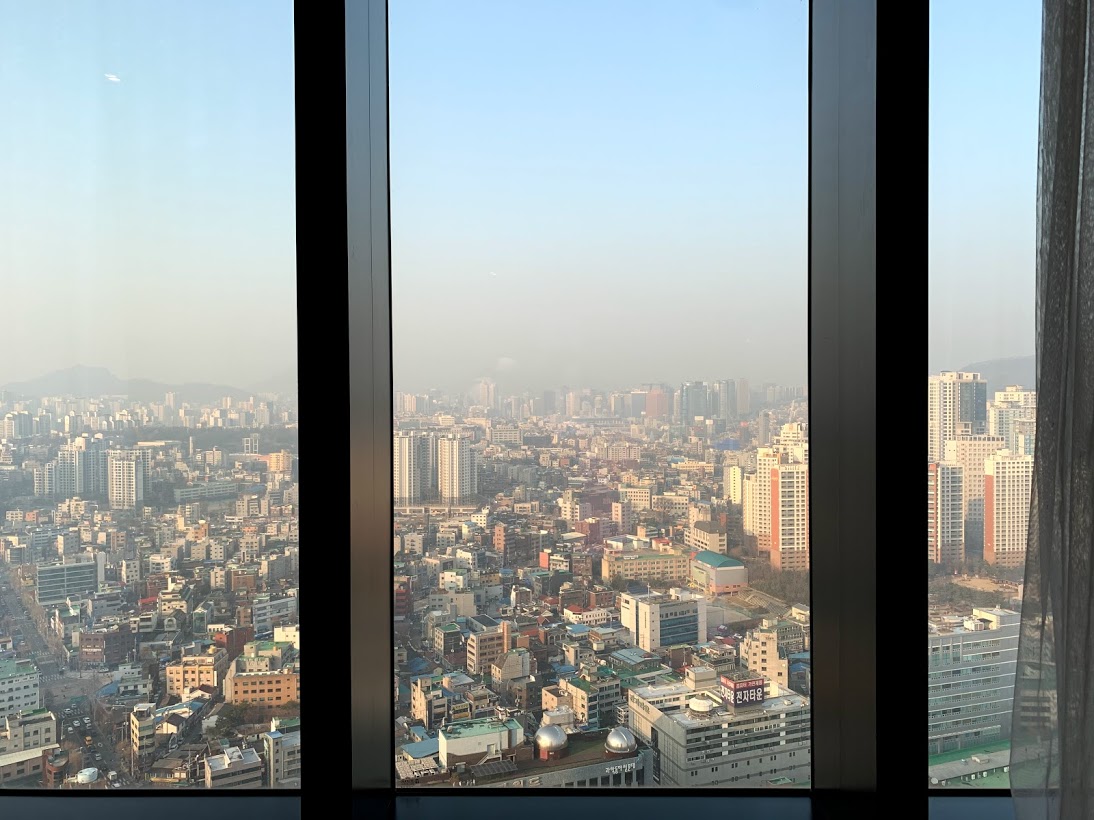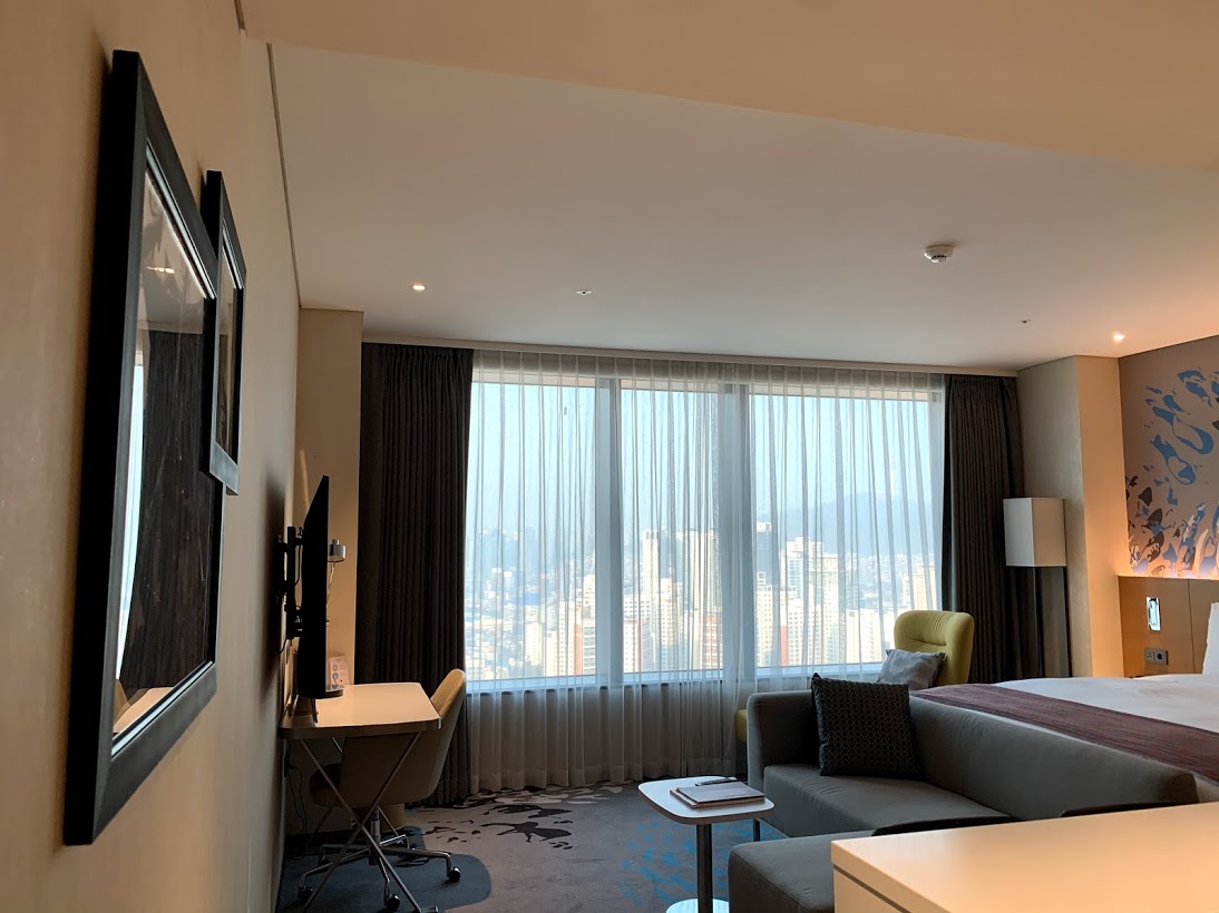 미세먼지가 가득한 날이라 한강뷰는 포기하고, 야경이나 즐기자고 시티뷰를 선택했다. 노보텔 앰배서더 서울 용산 체크인 담당 직원도 시티뷰가 나을 것이라고 추천해주었다. (아, 직원분들은 대체적으로 친절했다.)