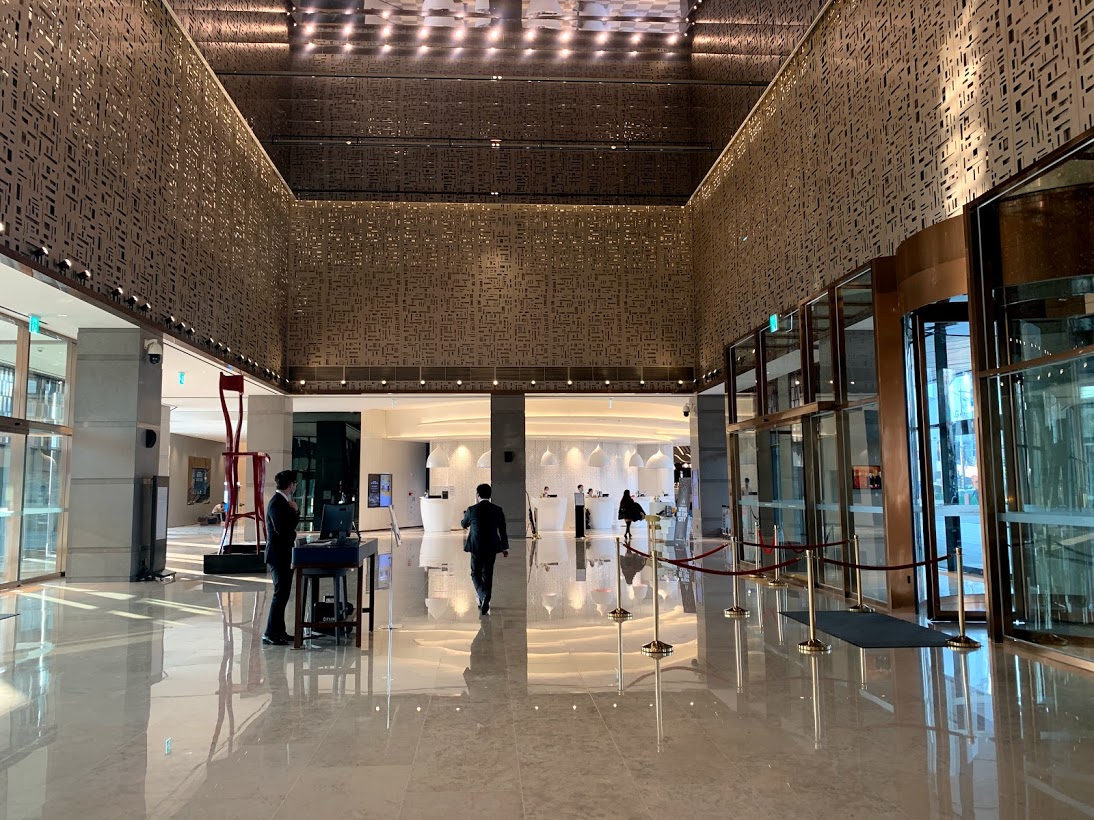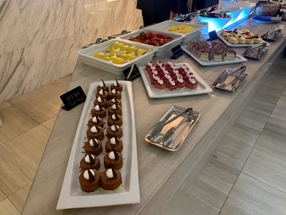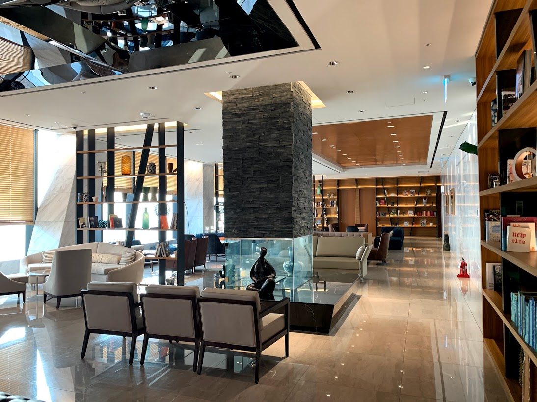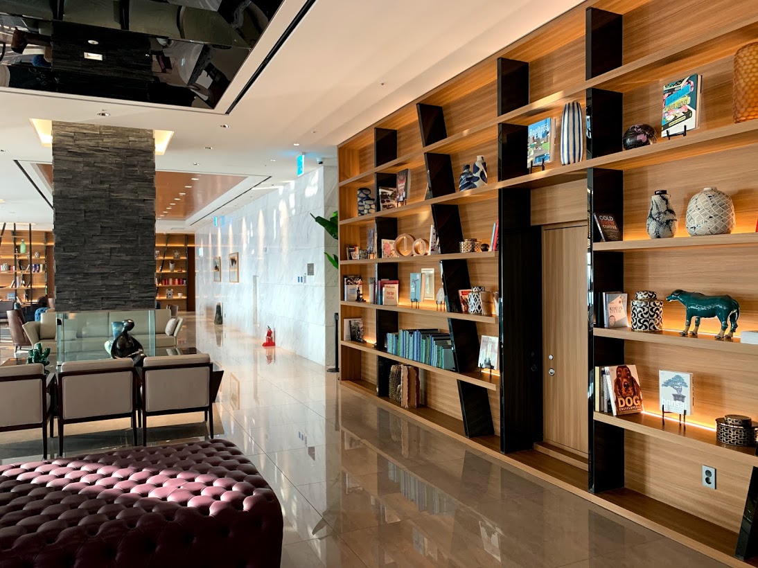 26층에 올라오니 아주 널찍하고 쾌적한 라운지가 나온다. 두 팀 정도가 체크인 진행 중이어서, 잠시 소파에 앉아 대기했다. 대기하는 중에, 코로나19 예방을 위한 여행력 조사 등 간단한 설문 조사가 진행되었다. 잠시 후 체크인이 진행되었고, 안내가 이어졌다. 40층에 위치한 프리미어 라운지에서 조식, 애프터눈 티 타임, 해피아워, 스낵타임 등 시간대에 따라 음식을 이용할 수 있다고.