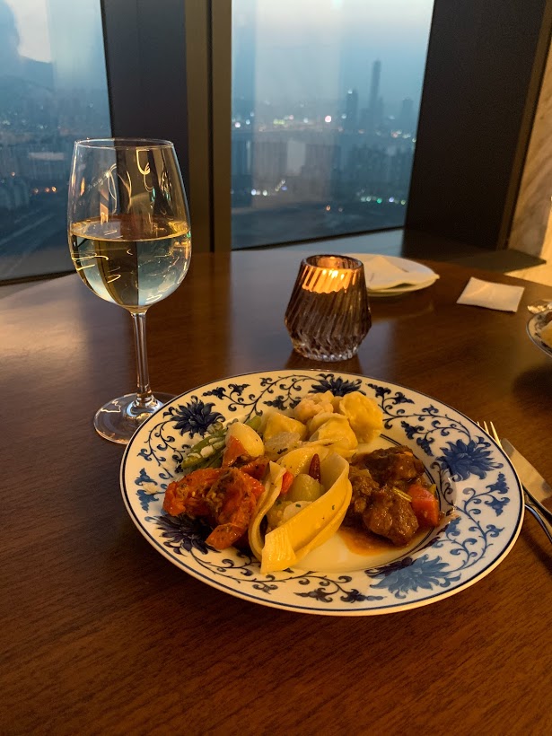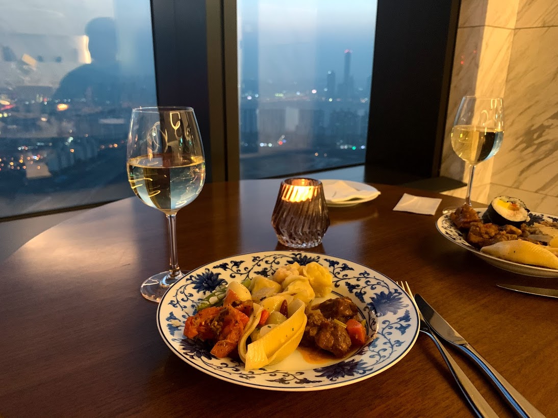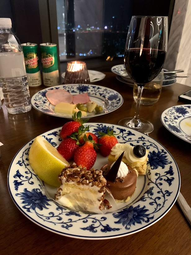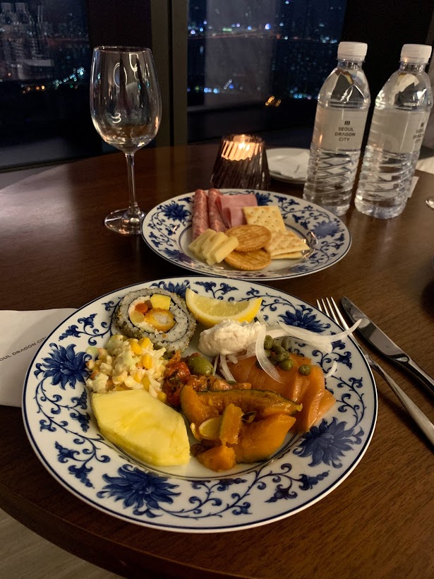 와인이나 진, 위스키 모두 한 종류 씩만 준비되어 있었는데 화이트도 그렇고 레드도 그렇고 와인은 그리 인상적이지 않았다. 결국 객실로 돌아가 따로 구매한 와인을 야경과 함께 즐기며, 행복한 하루를 마무리했다.