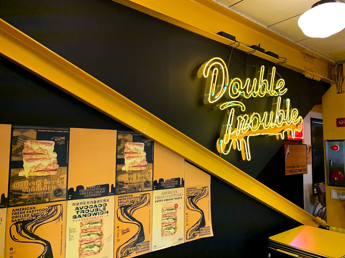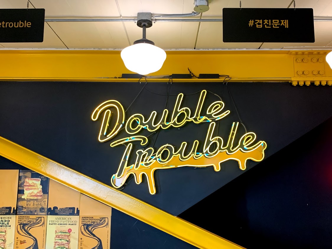 '강남역 맛집 조용한 곳 + 느끼함 + 간편함' 세 가지 요소를 찾고 있다면 200% 성공할, 미국식 샌드위치 집 더블트러블이었다. 개인적으로 쉑쉑버거나 여기나 비슷한 인상을 받는데, 바삭한 토스트와 진한 치즈의 풍미를 선호한다면 더블트러블이 더 마음에 들 것이다.