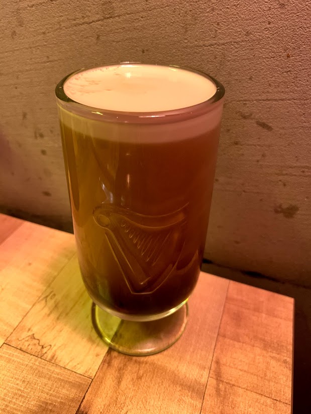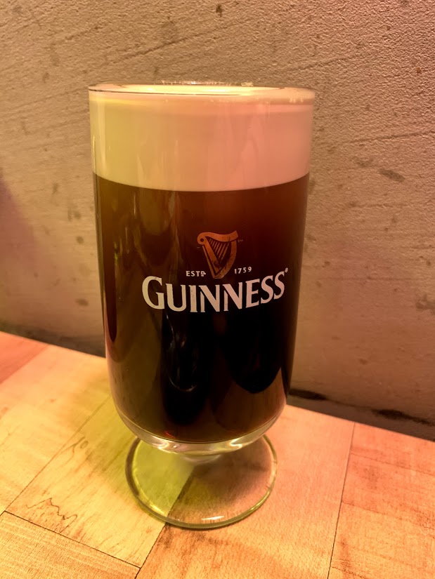 생맥주를 몇 잔 격파하고, 아름다운 기네스 생맥주를 시켰다. 생맥주로 서브하는 곳은 많지가 않아서 기네스 생을 발견하면 꼭 시키는 편이다. 처음에는 옅은 베이지 색을 유지하다가 점점 본연의 짙은 브라운이 올라온다. 마치 카푸치노 같은 비주얼이다.