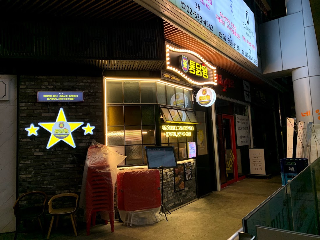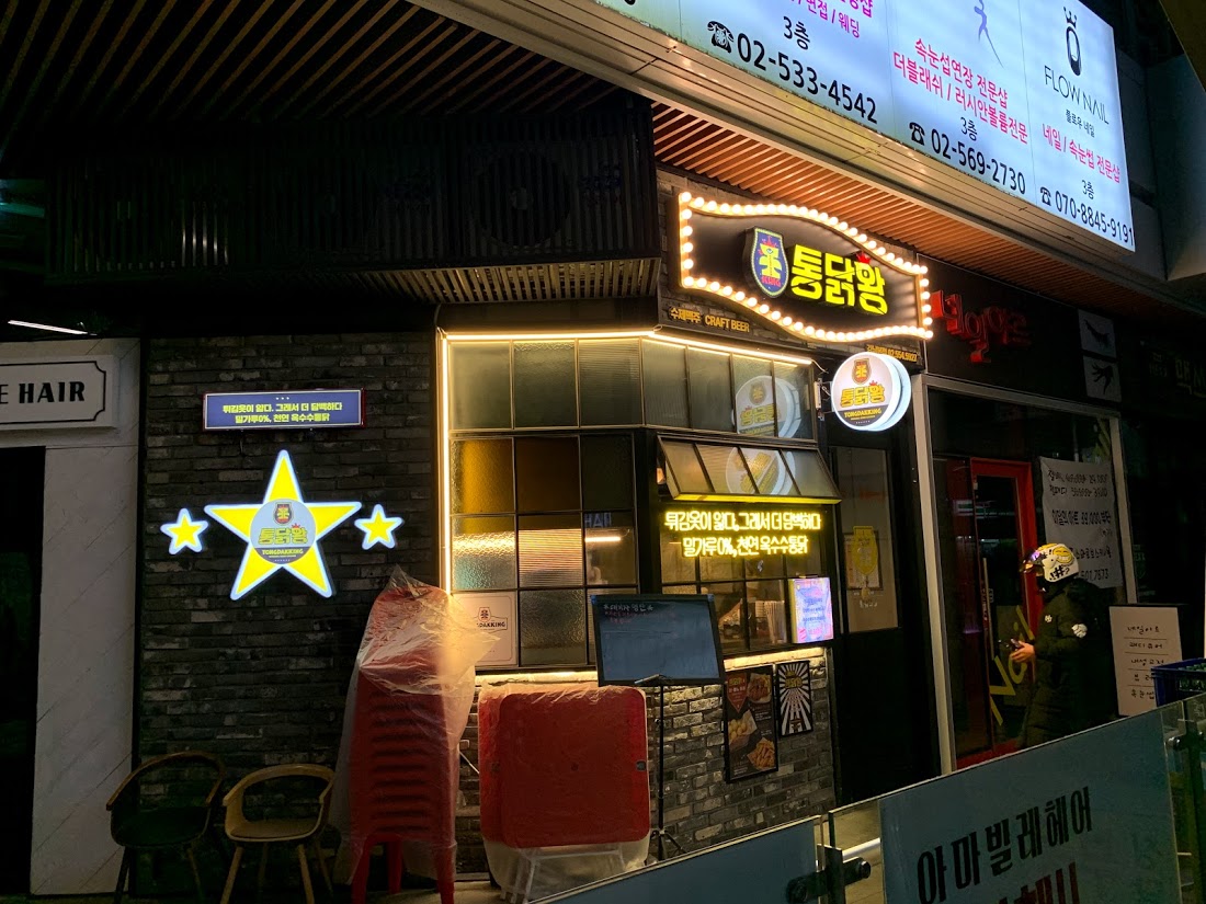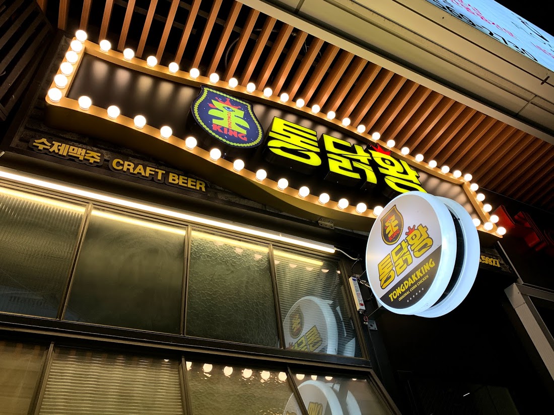 간단히 치맥할 곳으로 동료에게 추천을 받았던 '맥쓰세계치킨'이 문을 닫았다. 해서 다른 강남역 술집을 찾던 중, 바로 옆옆 칸에 환하게 빛나고 있던 통닭왕 간판을 발견했다. (눈부셔...)
