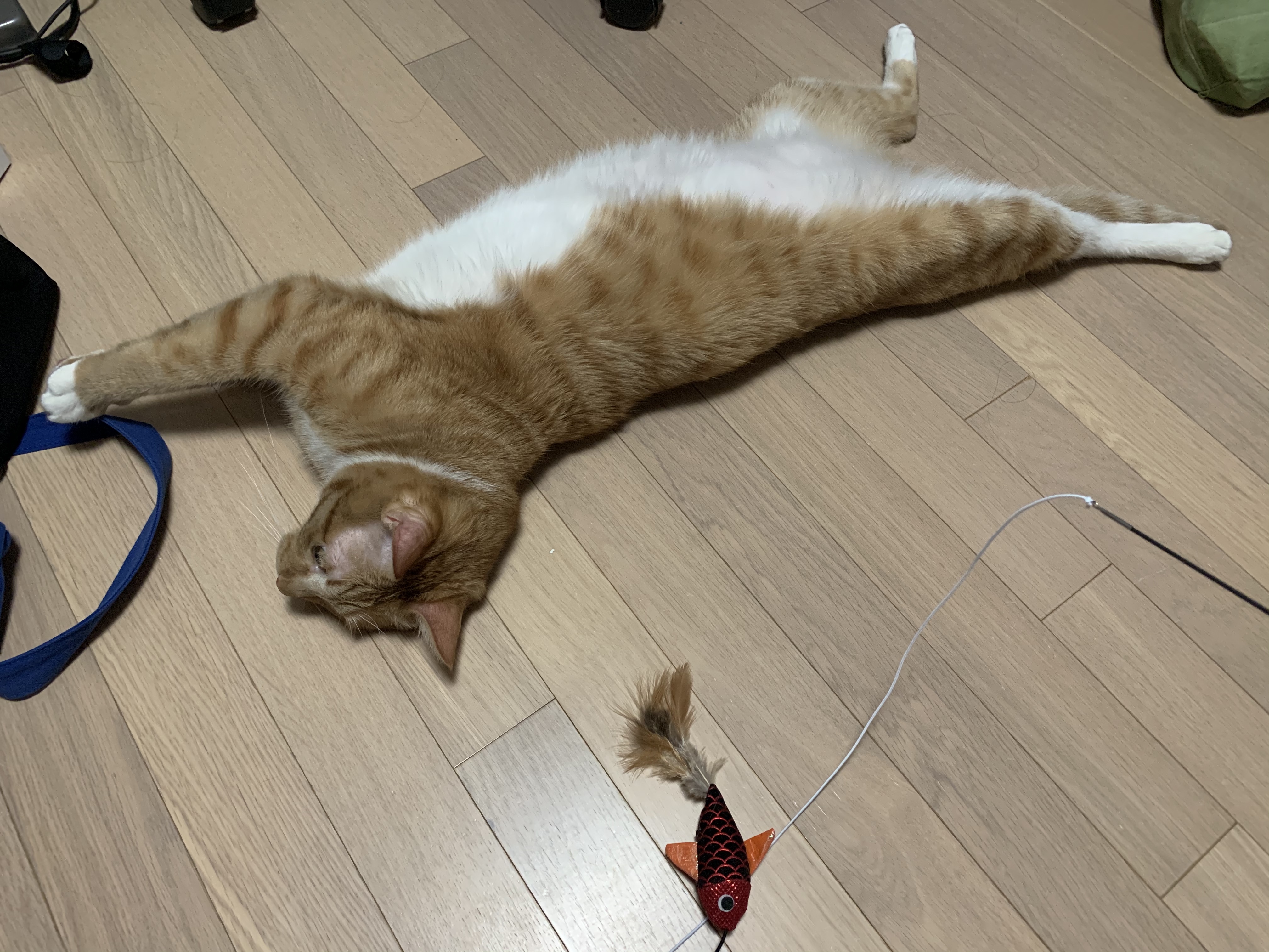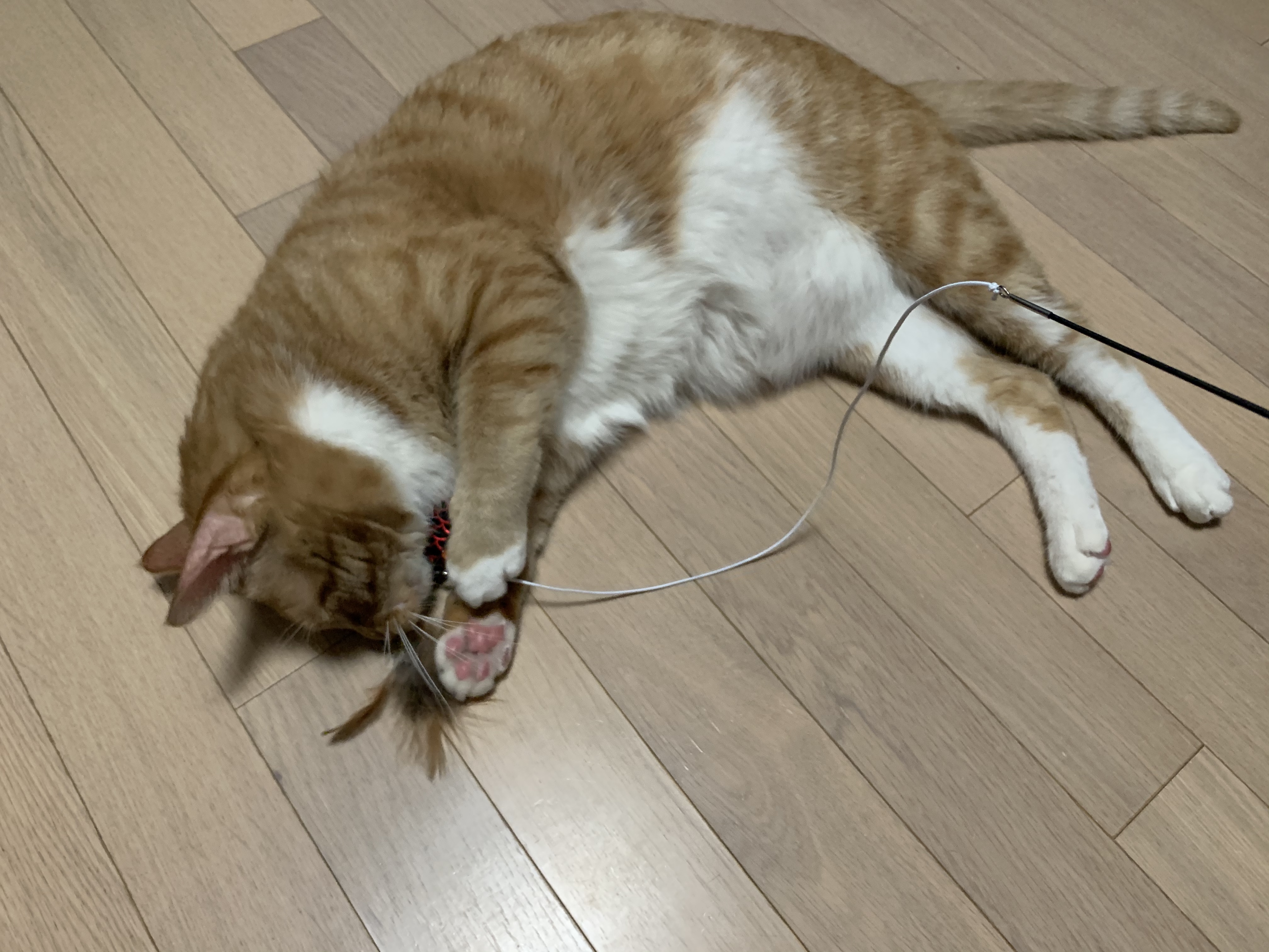 다이소 고양이 장난감 추천템, 3단 고양이 낚싯대와 신나게 놀다가 지친 우리집 맹수 고양이. 😻