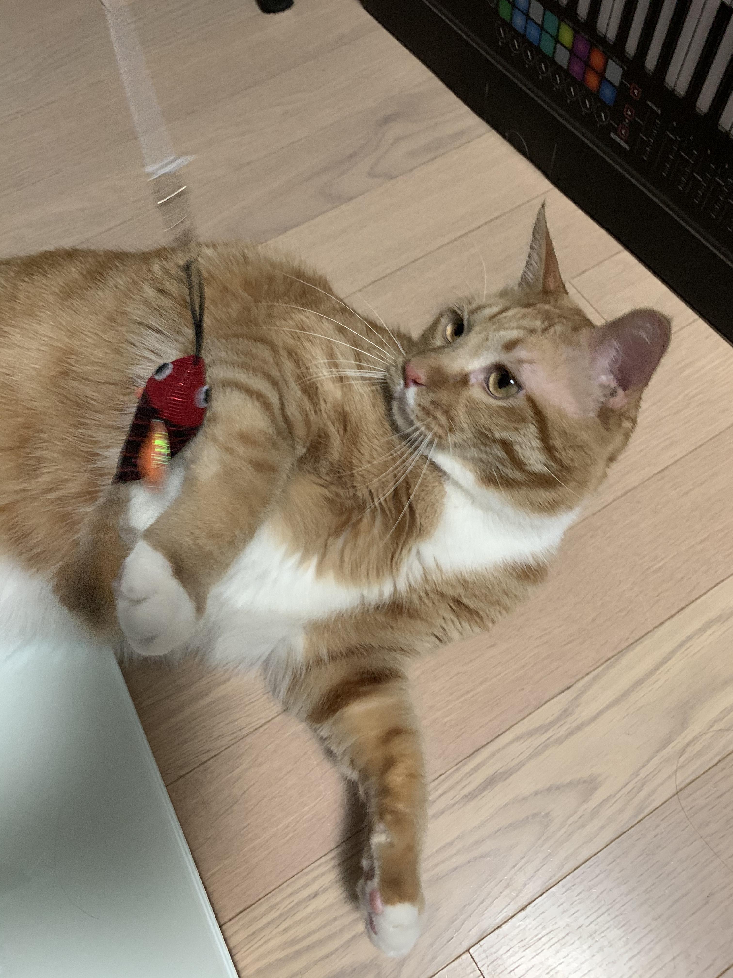 그럼 본격적으로 놀아보자! 가동 범위가 넓어 에너지 뿜뿜하는 거대냥과 놀아주기 딱 좋은 다이소 고양이 장난감!
