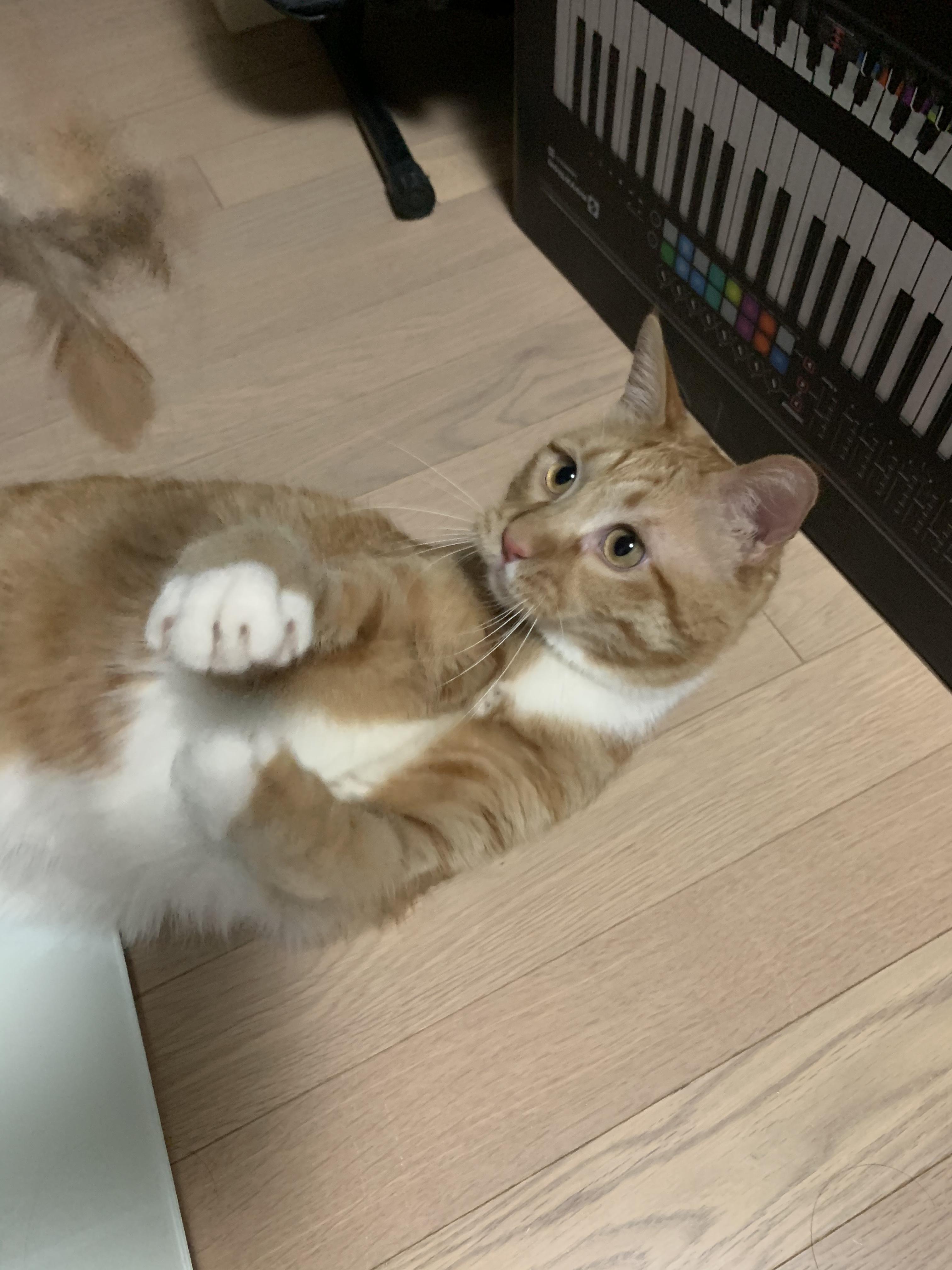앞발 톡톡과 펀치, 점프와 스매시를 반복하는 우리의 스포츠냥! (등근육 실화냐...)